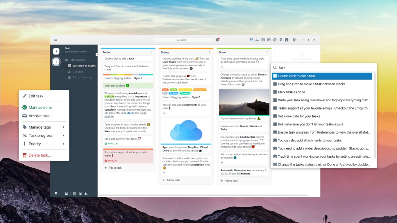 Stacks has most of Trello's premium features and it allows you to take control of where to store your data. Indeed, Stacks works on top of your local folders or on the cloud service of your choice, keeping your data safe. Currently, you can use Stacks for your personal projects, we are working on adding a collaboration feature in the near future.