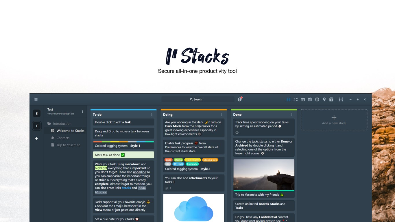 Stacks is a secure all-in-one productivity tool bringing an easy and friendly interface that accompanies you towards completing any challenge you may come across.