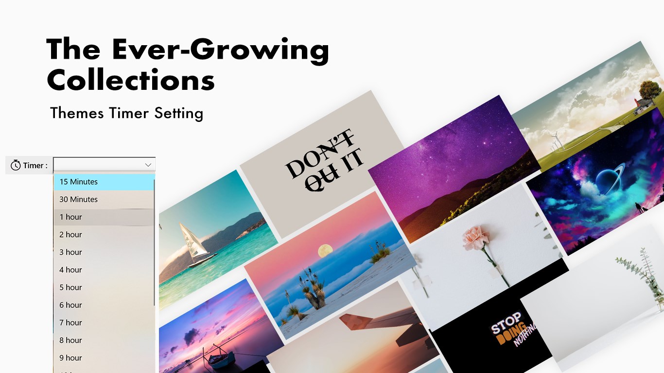~ Wallpaper change durations : 15 minutes, 30 Minutes, 1 Hour and uptown 12 Hours.