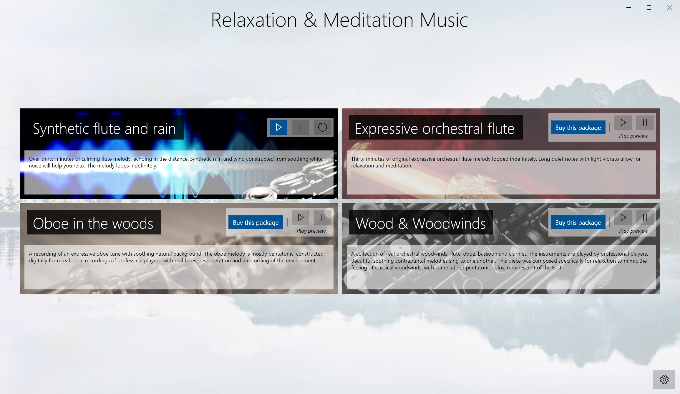 Unique relaxing orchestral compositions that imitate classical styleOboe and flute melodies with soothing natural background recording of a forestOver 30 minutes of unique synthetic wind, rain and flute available for free