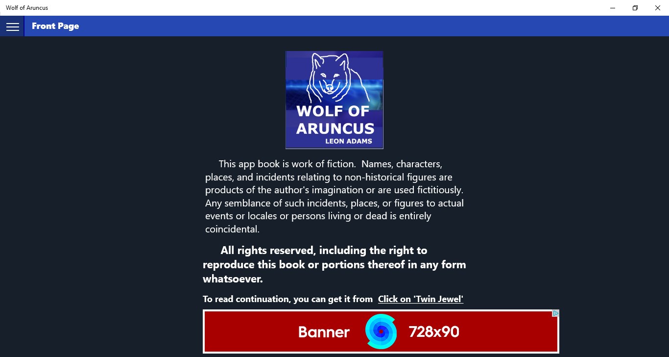 The Wolf of Aruncus is a book app. You can read it even if you do not have any internet connection.