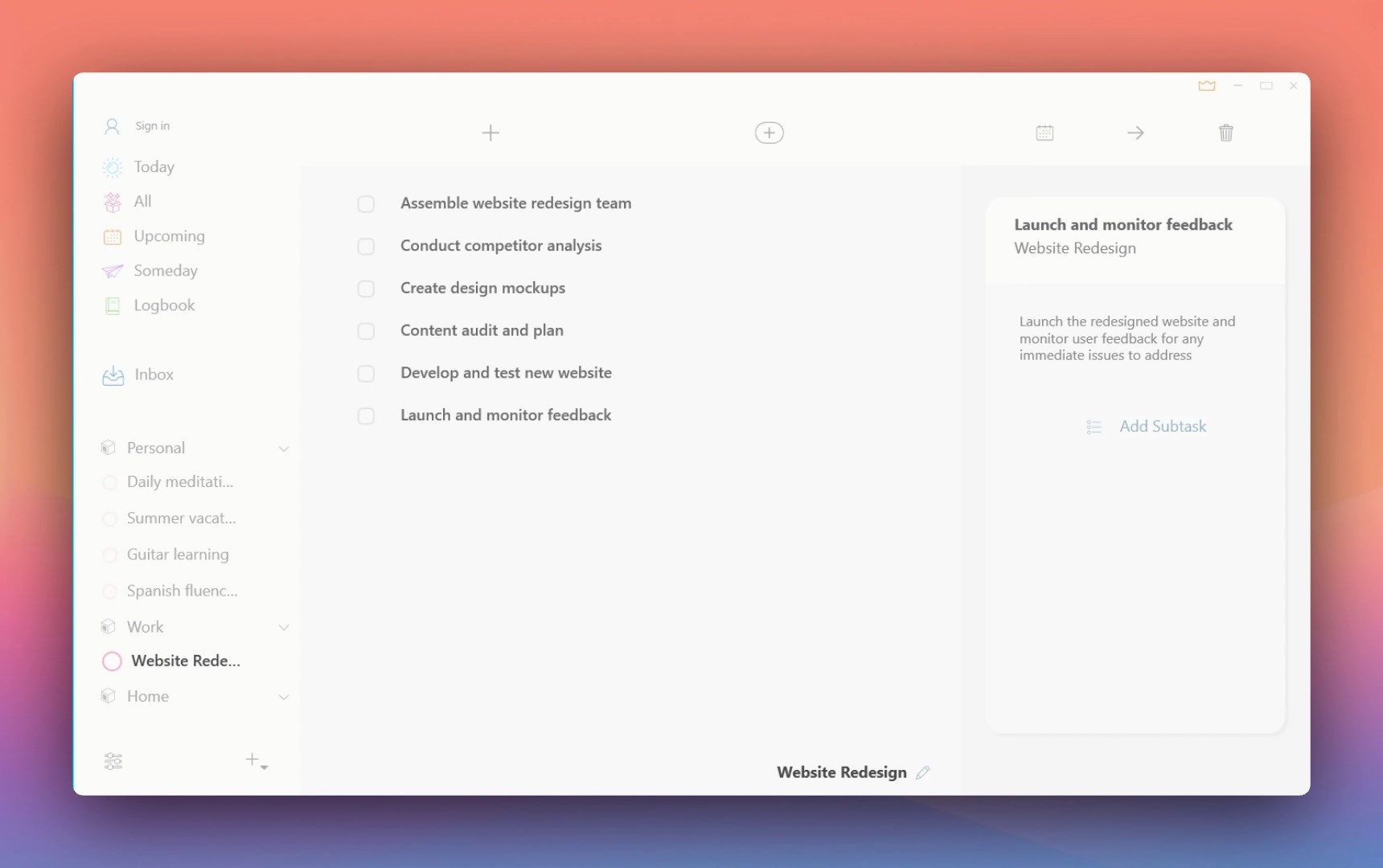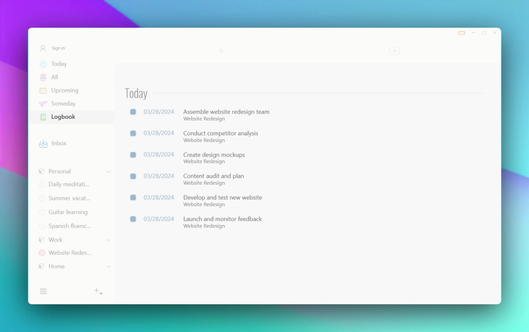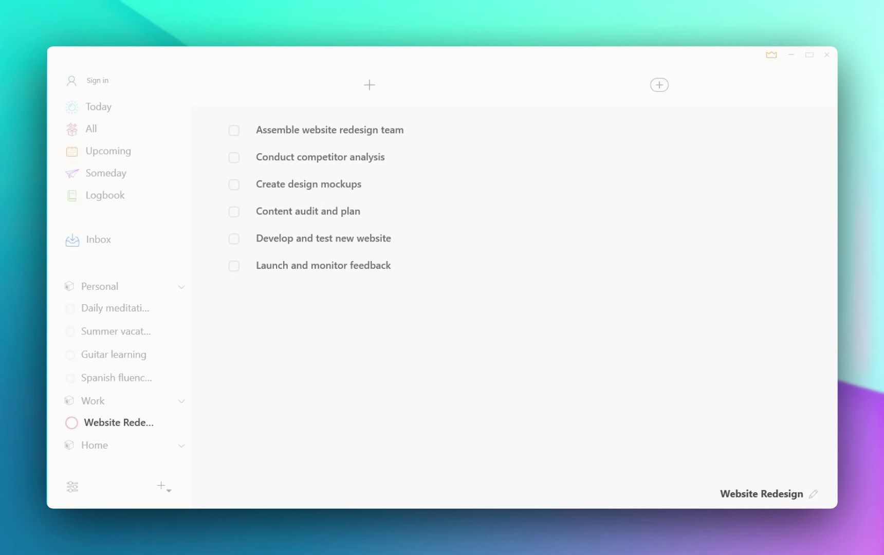 ⭐ Manage todos with task tracker project, area, checklists and tags