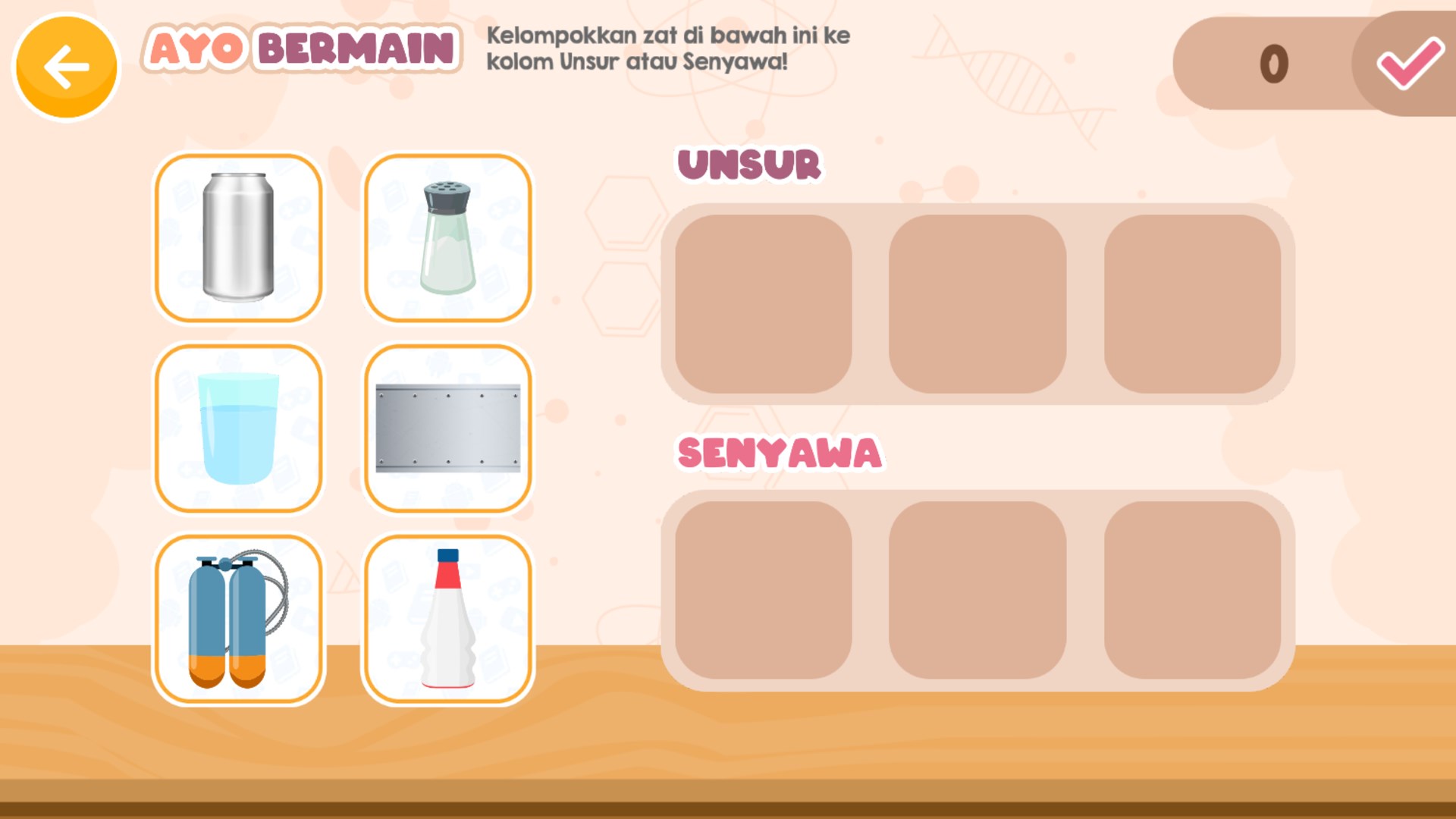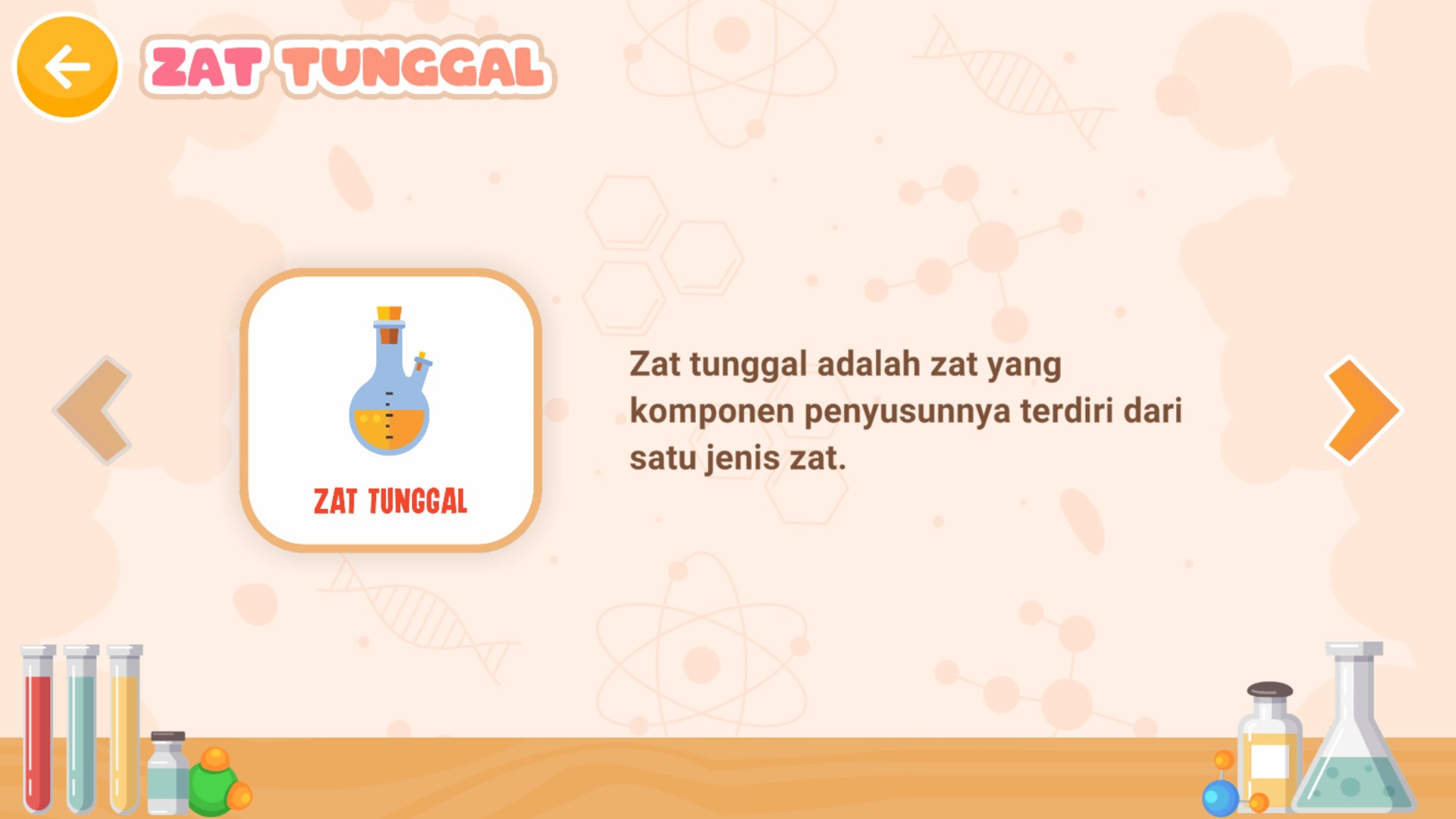 Zat Tunggal dan Campuran | Aplikasi ini berisi materi Zat Tunggal dan Zat Campuran. Disajikan dengan slide teks dan gambar. Terdapat juga menu permainan puzzle mengelompokan unsur atau senyawa, dan juga permainan puzzle membuat campuran homogen dan heterogen.