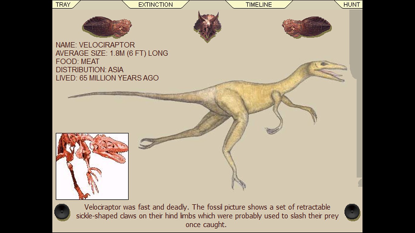 This is a fun learning game all about dinosaurs. You search for the fossil remains of these ancient creatures in all parts of the world in the game and store your finds in your fossil tray, learning about them as you go. The game involves searching photographs of locations around the world for dinosaur remains and then correctly identifying your finds using the reference section.