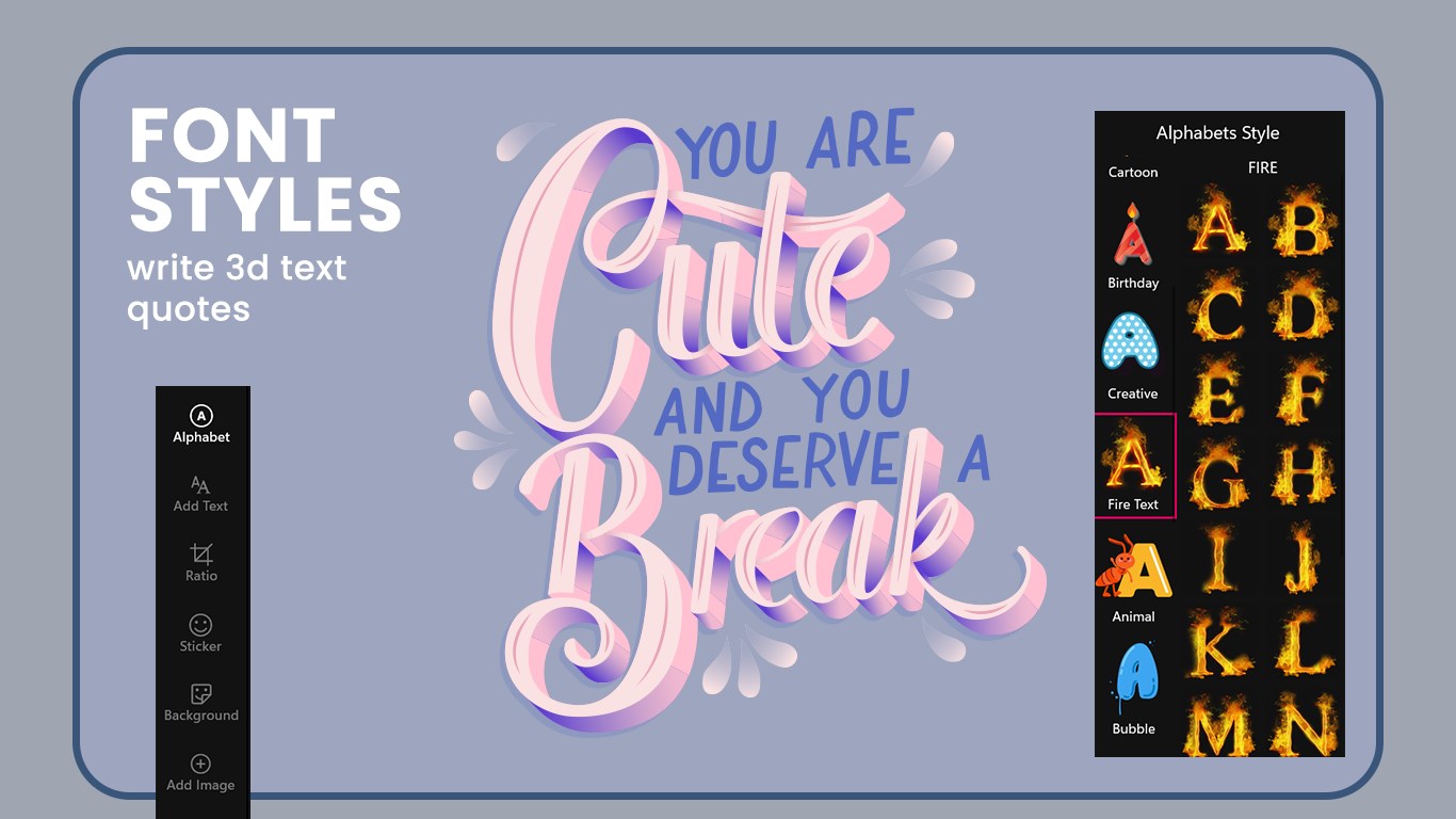"Create Text Creator" contains the gorgeous background that makes your text more attractive.