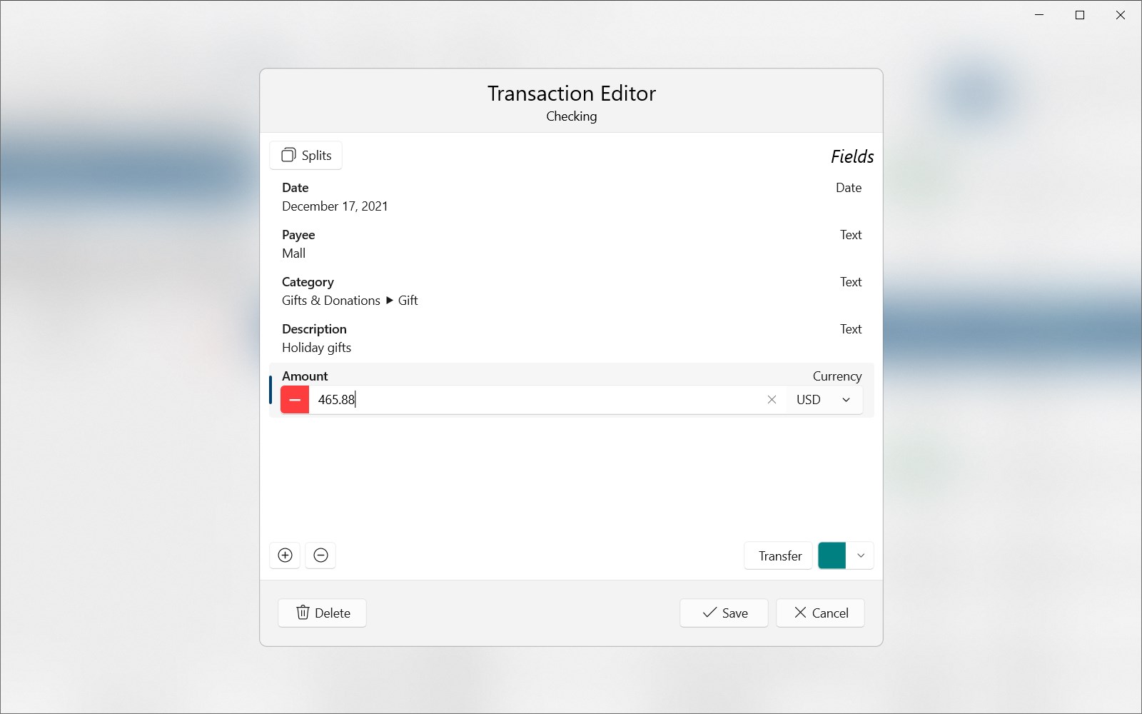 • Text autocompletion when editing to automatically suggest similar values from existing transactions