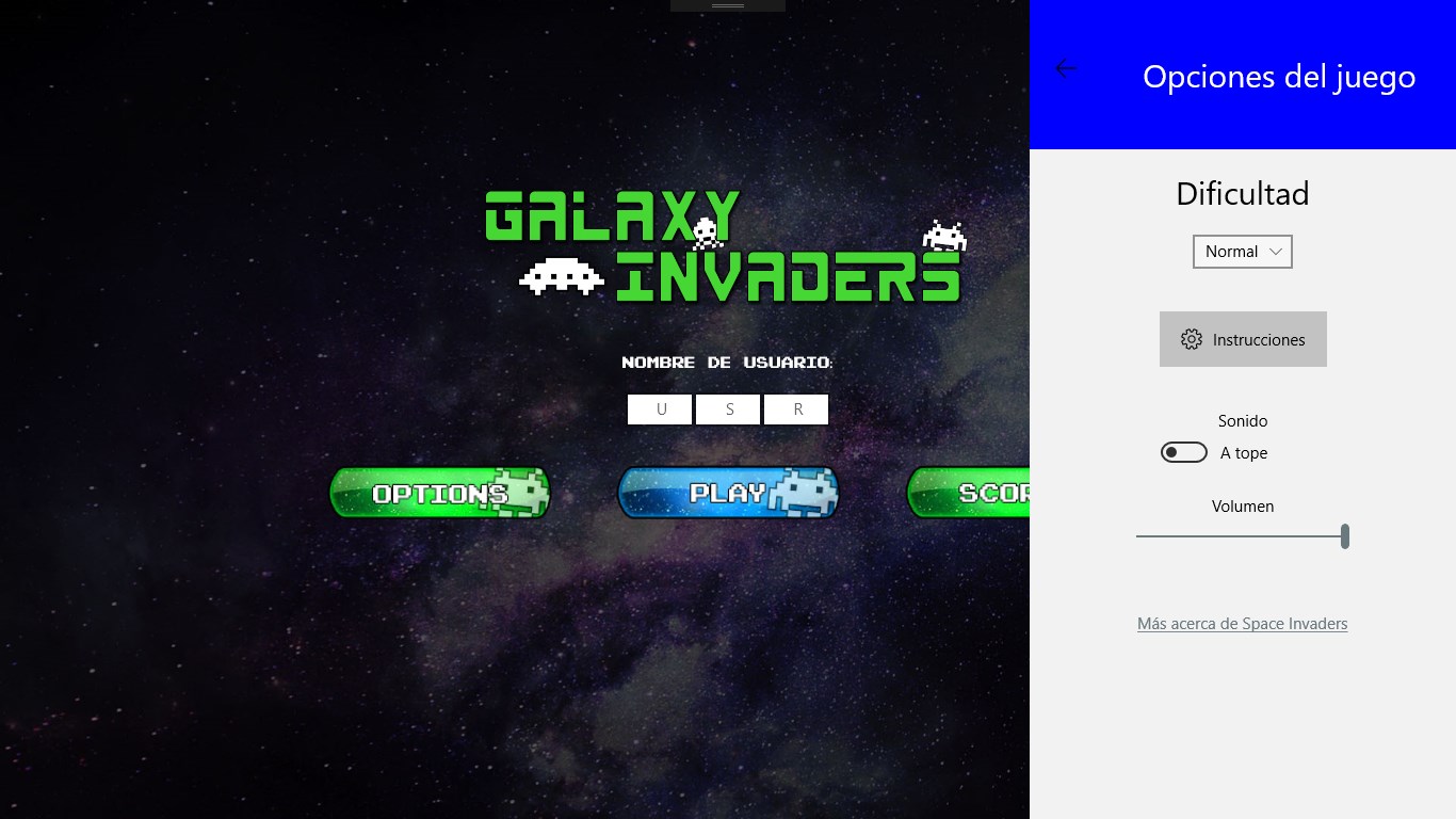 This is not an emulator. If you want to go back to 80's, this is your game! Galaxy Invaders is based on an old mythical game and developed by a group of 4 developers from IES Nervión School of Sevilla.