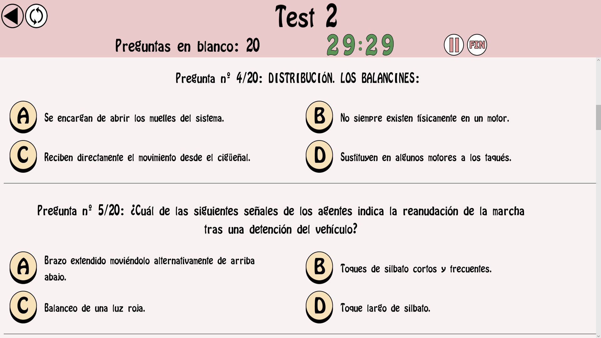 - Dos modos de realizar un mismo test (modo de respuesta instantánea o modo examen).