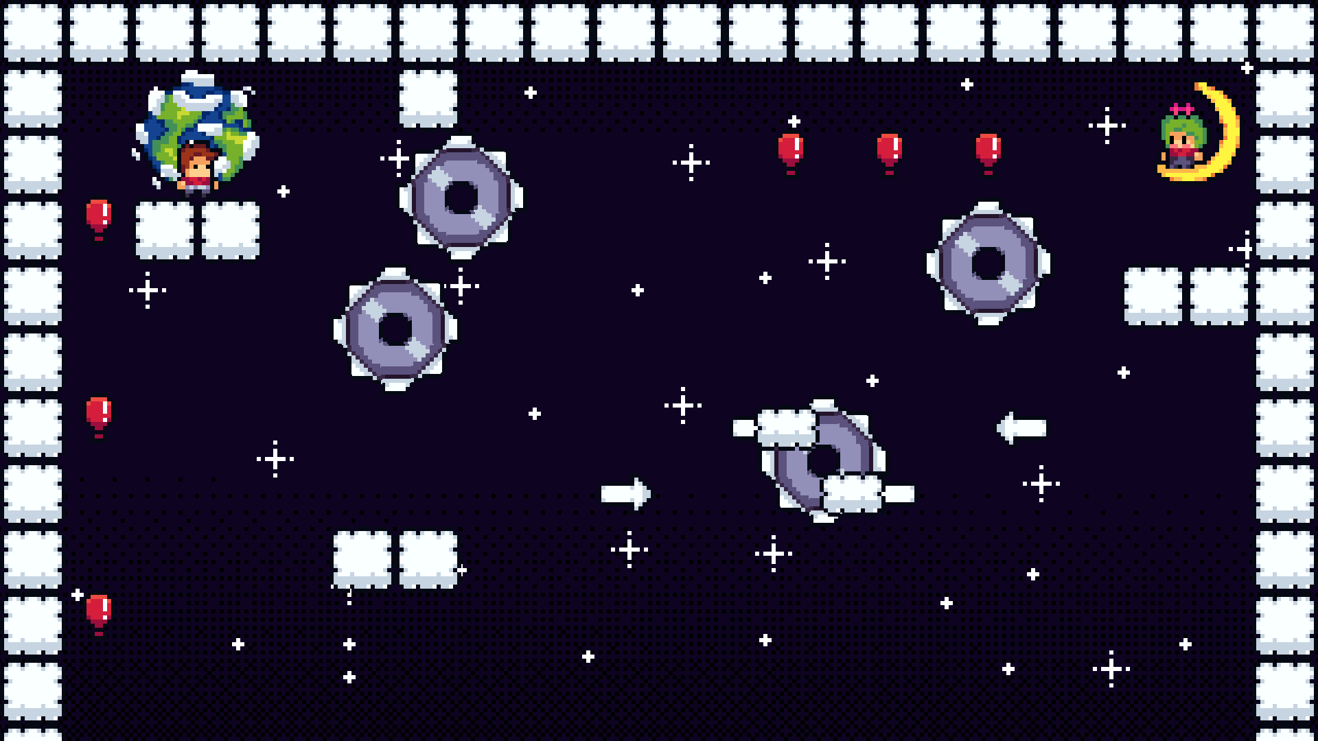 Jump over clouds, balloons, trampolines and into special portals in order to get to the ending of this pixel art made beautiful game.