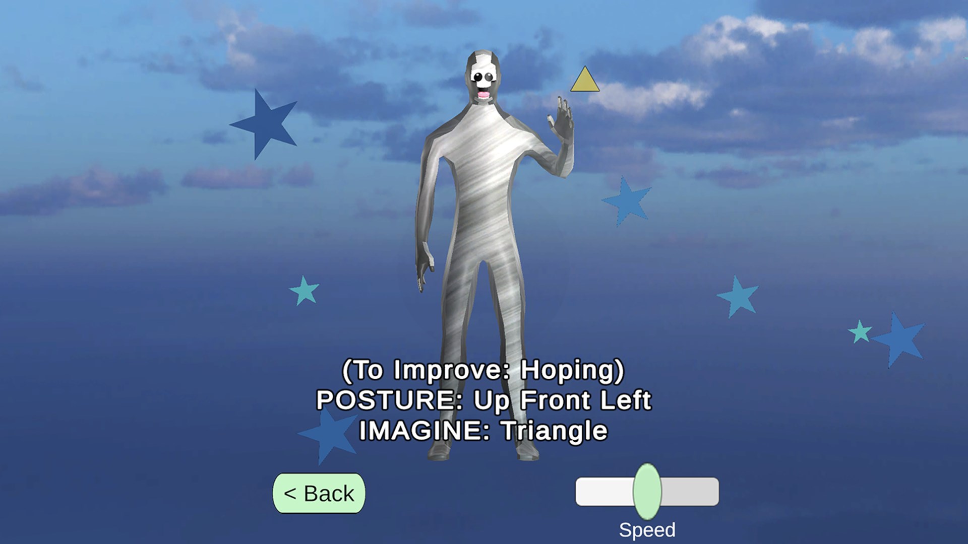 A healthy exercise and awareness routine. Imagine letters, numbers, and shapes around your body and point to them. The symbols are a spiritual message.
