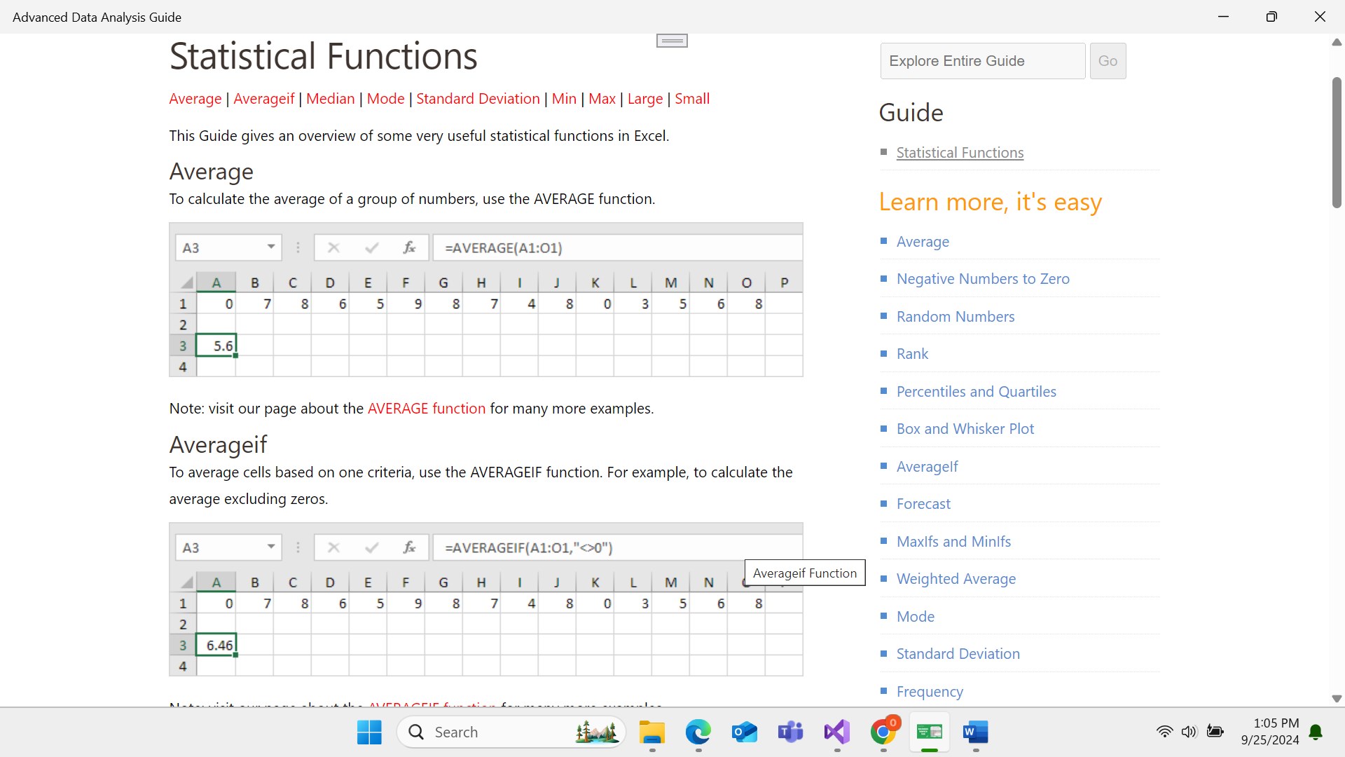 8 Statistical: Average | Negative Numbers to Zero | Random Numbers | Rank | Percentiles and Quartiles | Box and Whisker Plot | AverageIf | Forecast | MaxIfs and MinIfs | Weighted Average | Mode | Standard Deviation | Frequency