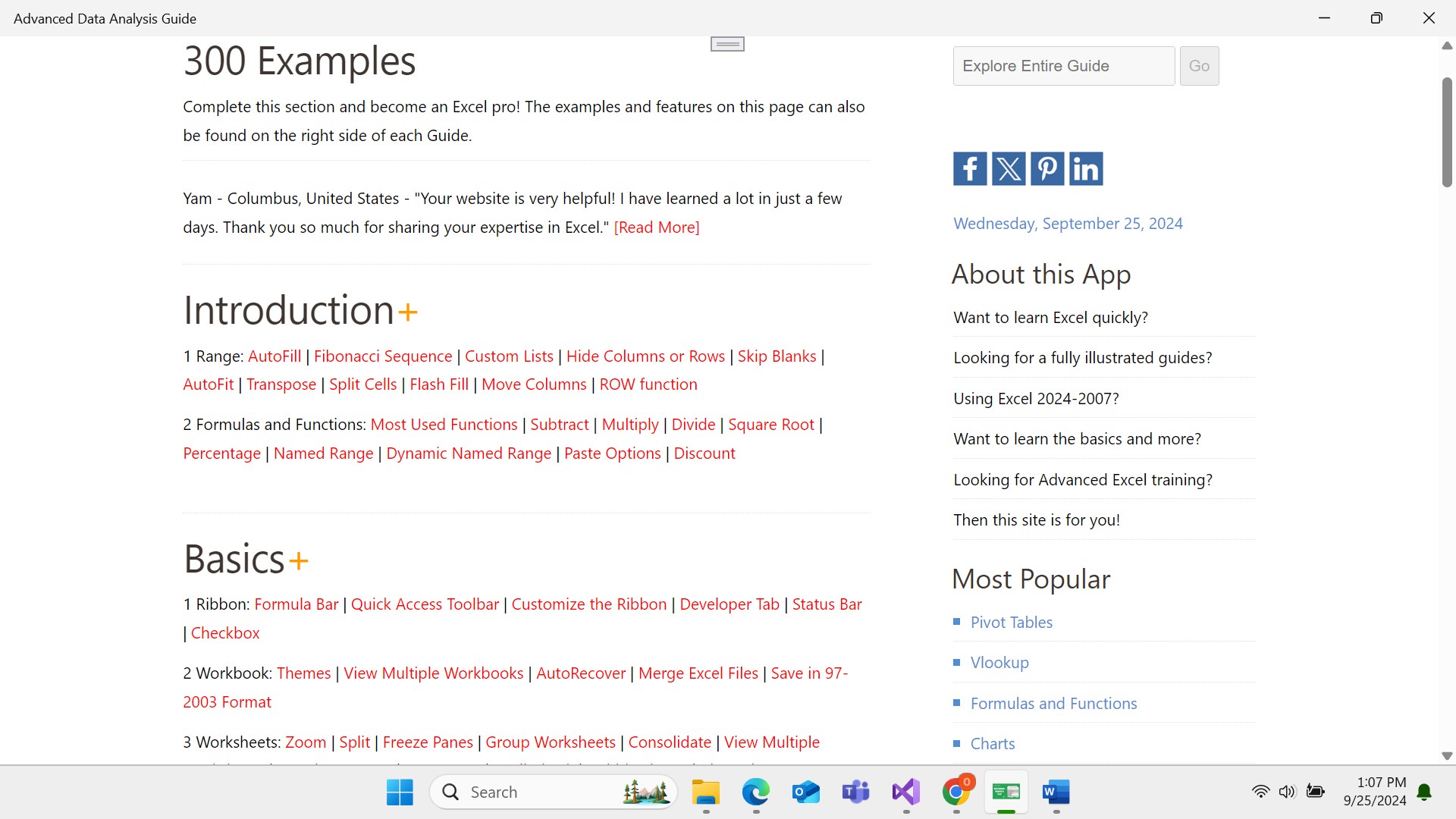 Basics Data Analysis GuideStatistical Formulas & FunctionsData ValidationVBA and MacrosCharts Array FormulasAnalysis ToolPakActiveX ControlsWorkbook and Worksheet ObjectFunction and SubPivot Tables