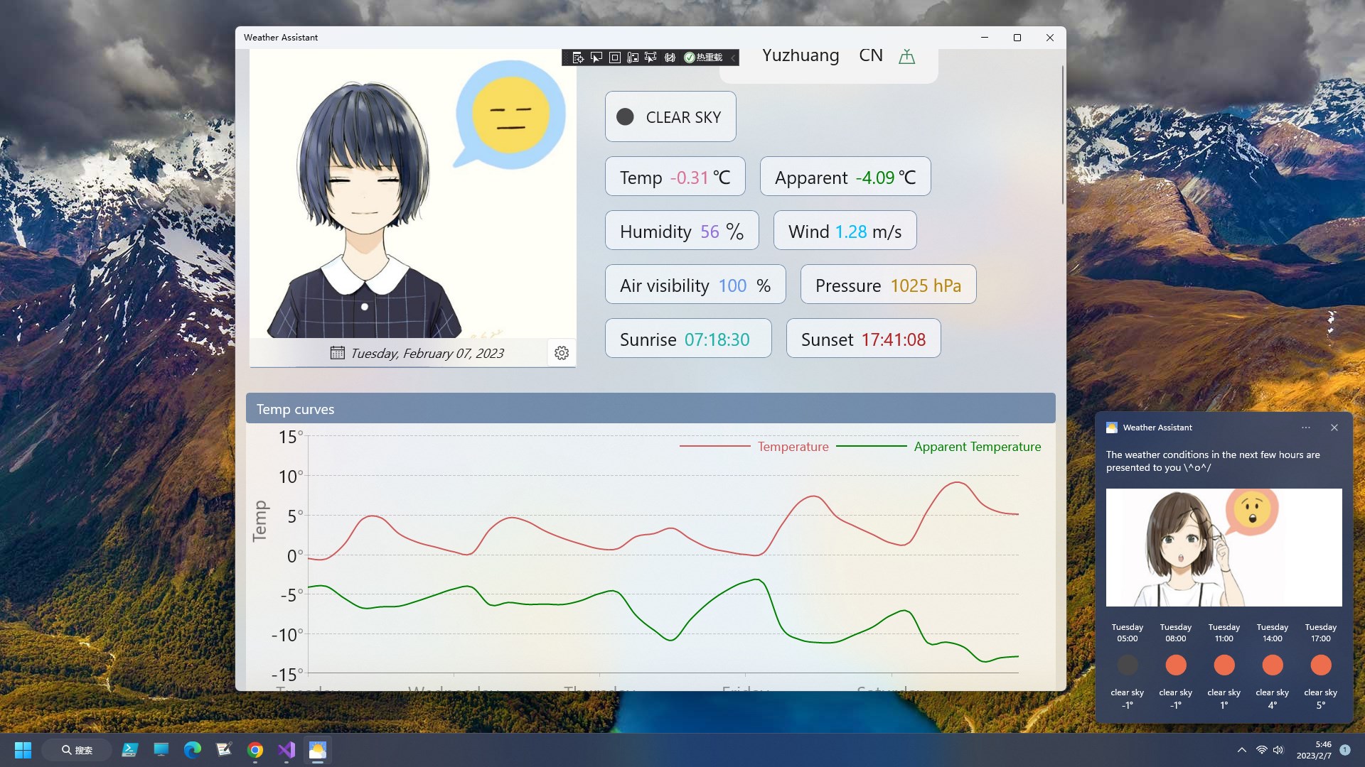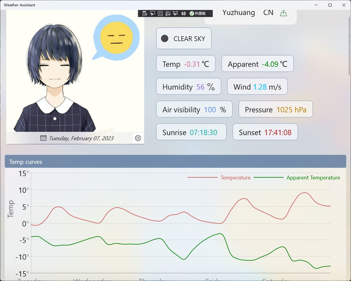 Real-time weather and weather forecast, with toast notification for weather forecast