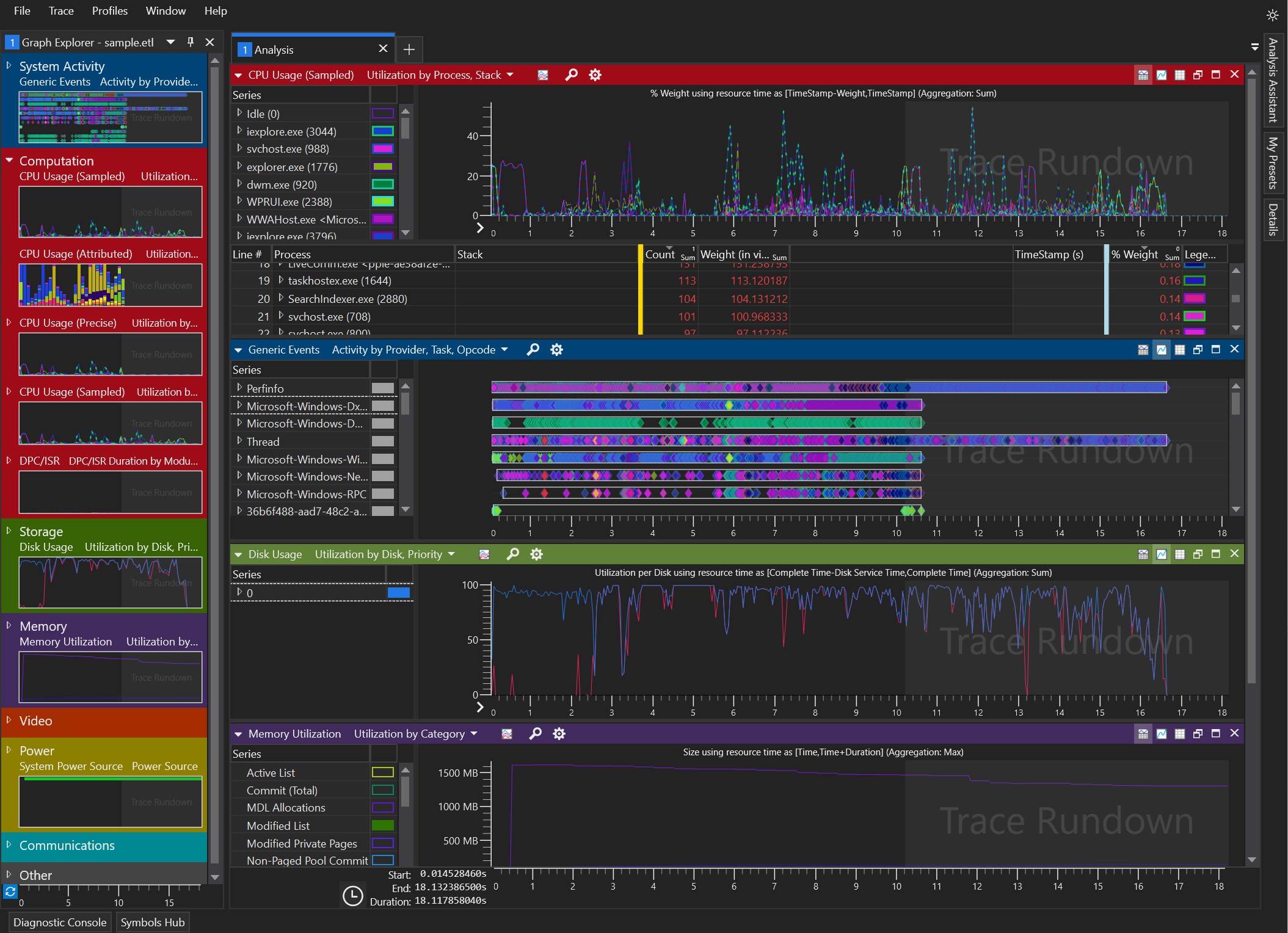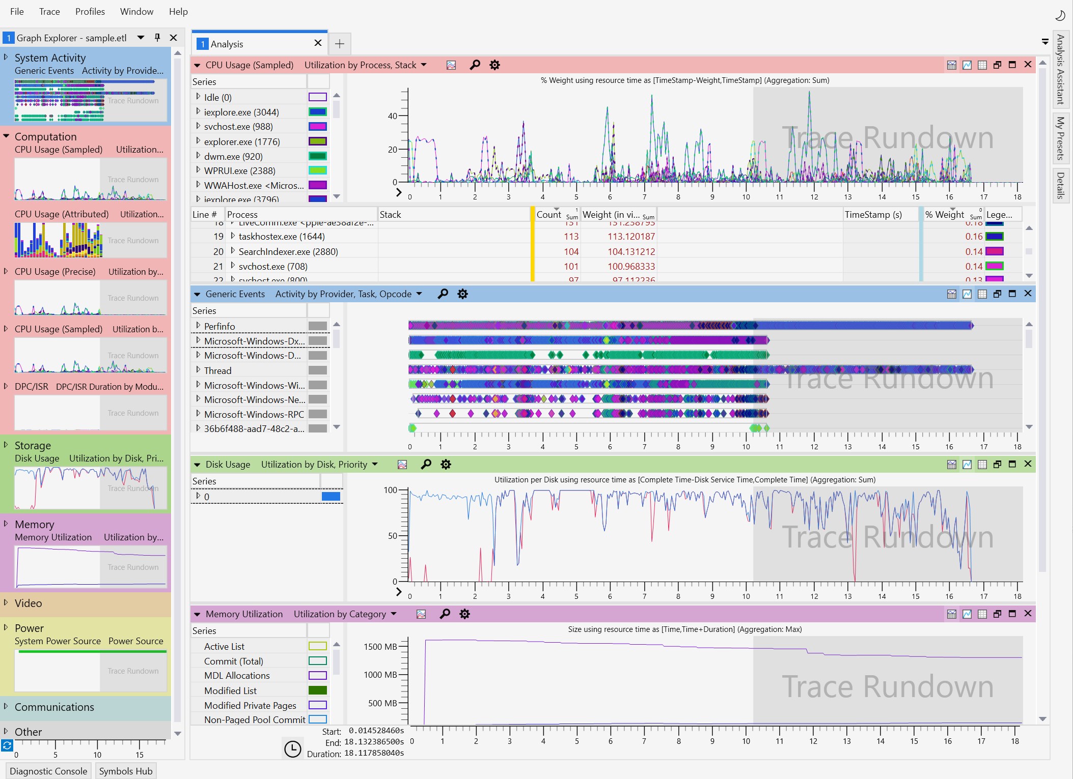 This is the preview version of the Windows Performance Analyzer (WPA).