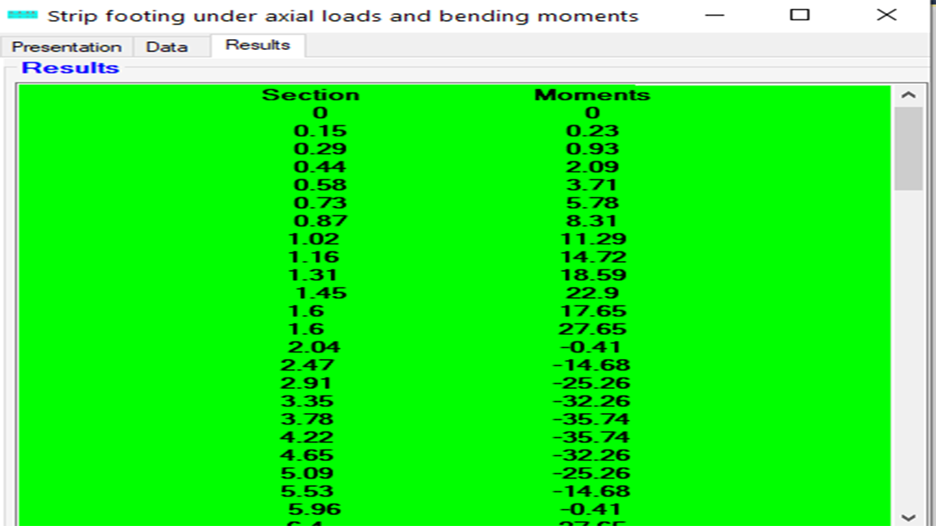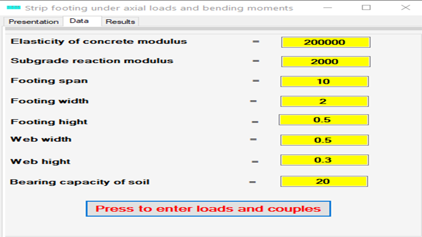 Step 4: Use STRIP FOOTING FOR AXIAL LOADS AND MOMENTS