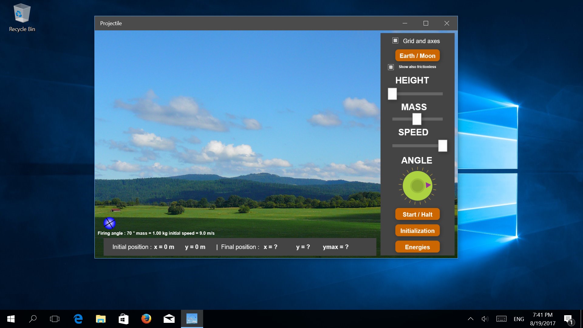 You can display a grid with the axes, get the value of y Max and x final, or display the trajectory of the projectile, taking into account the friction.