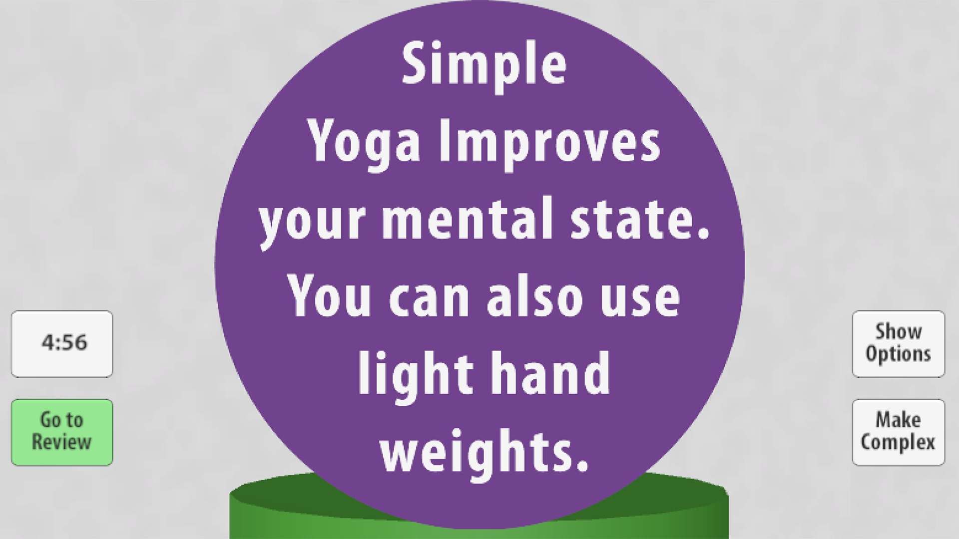 Easy yoga for all ages. This is an app exercise most people can do. It can be done sitting or standing. It is good for body and mind. It also improves your standing posture and awareness.