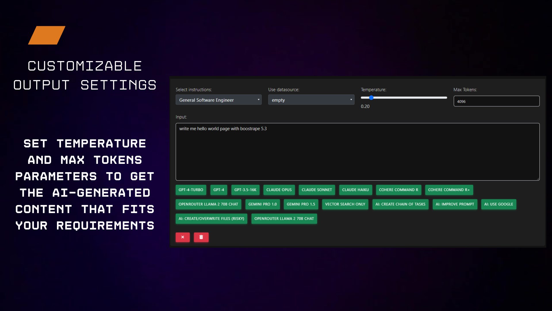 Fine-Tuned Control: Adjust temperature and max tokens parameters to get AI-generated content that perfectly matches your requirements.