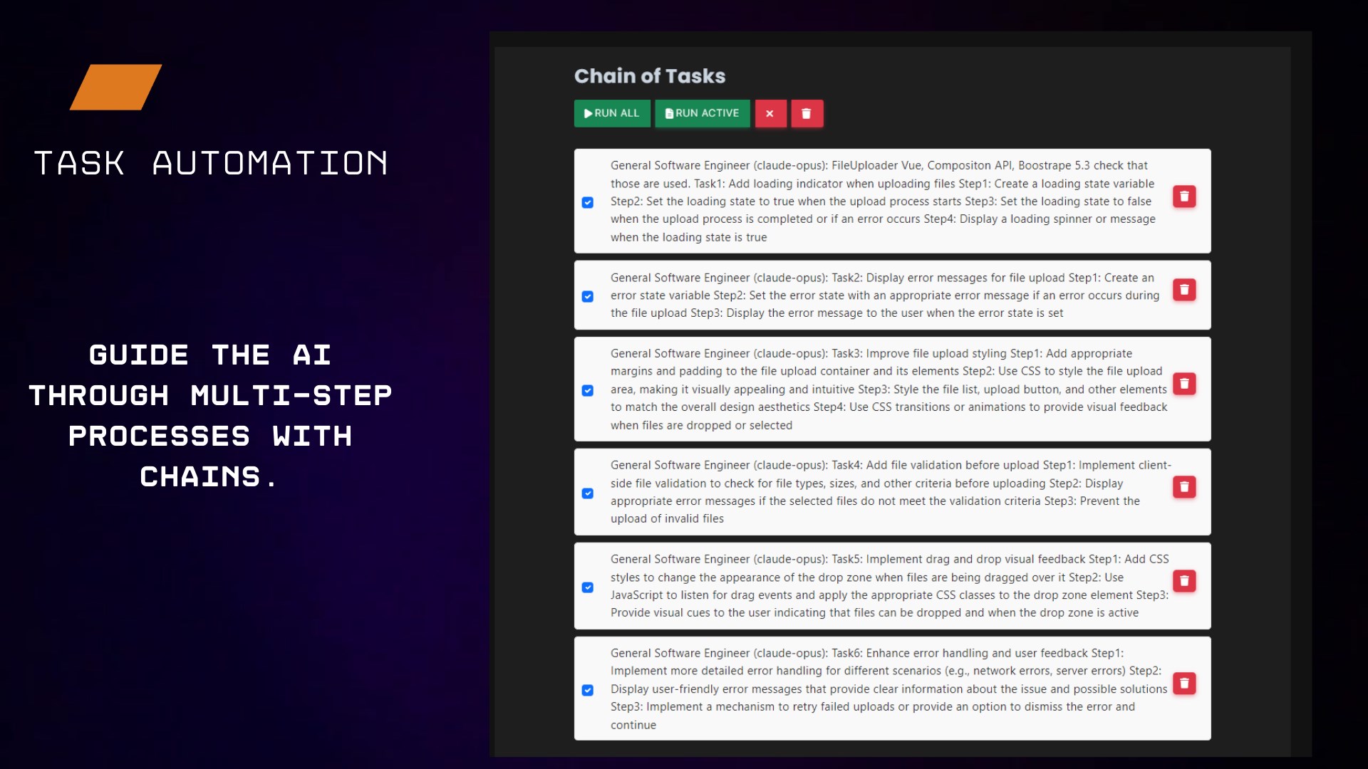 Task Automation: Streamline complex workflows and guide the AI through multi-step processes with chains.