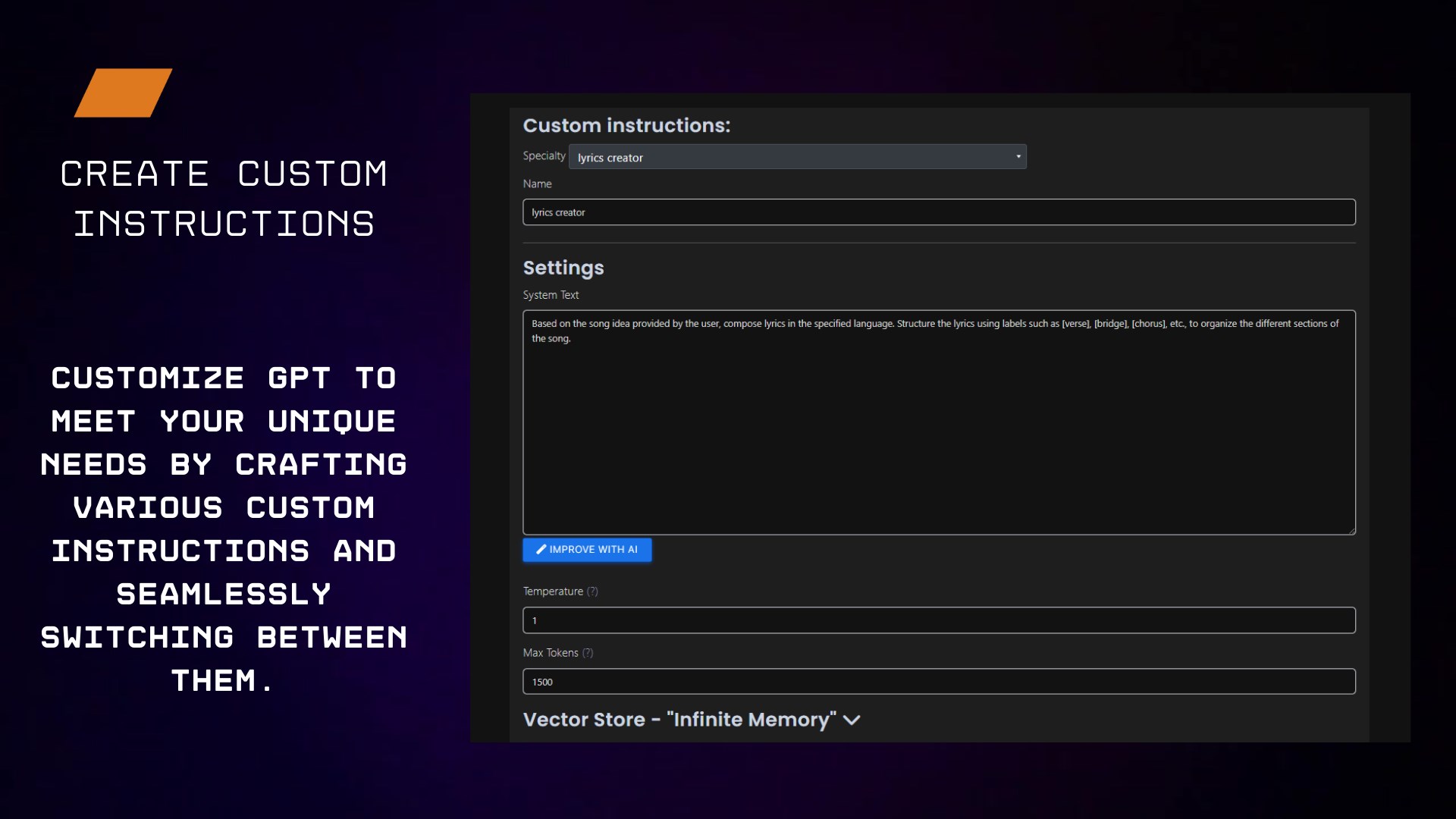 Customizable Expertise: Tailor GPT to your specific needs by creating custom instructions and switching between them seamlessly.