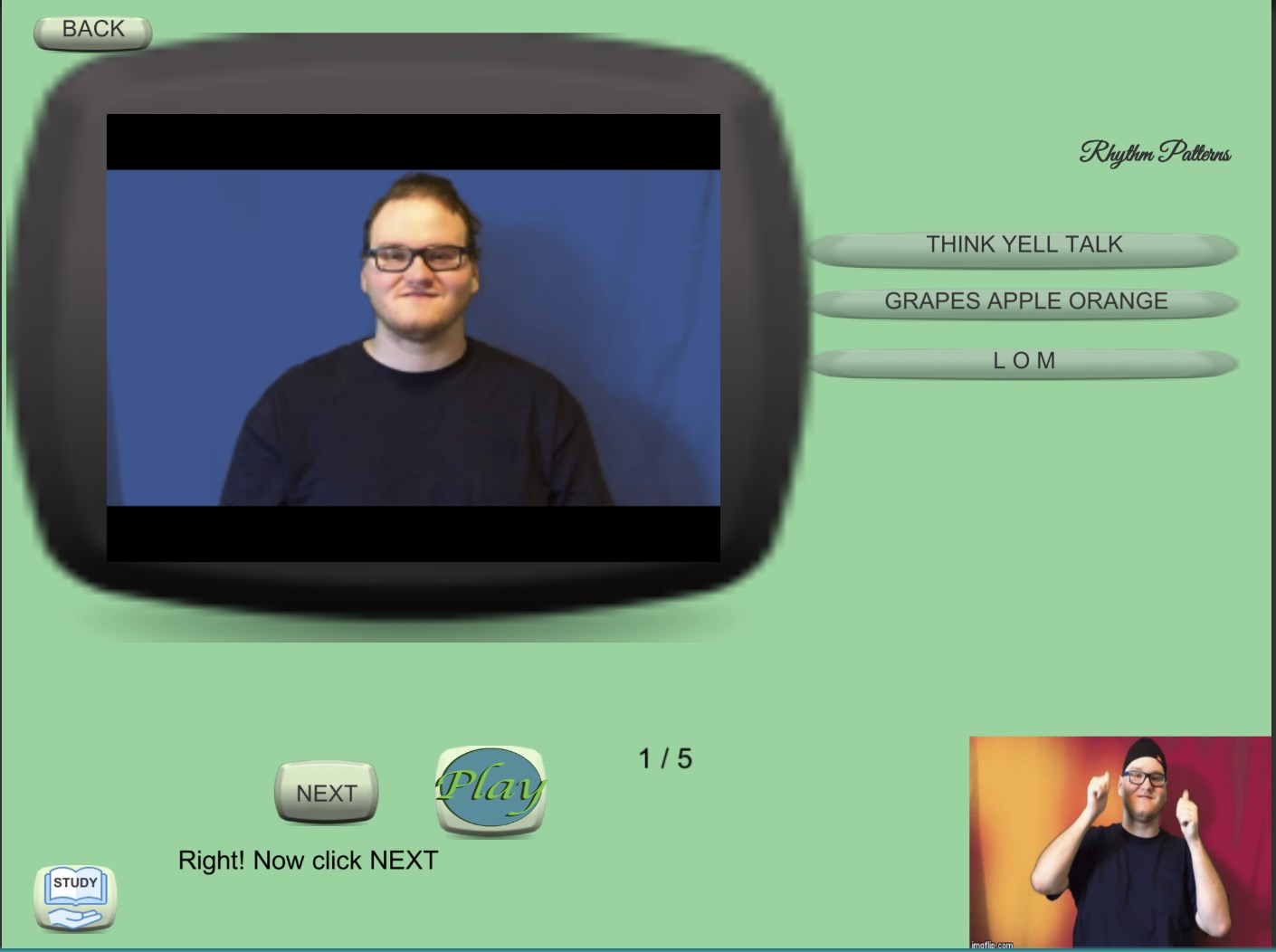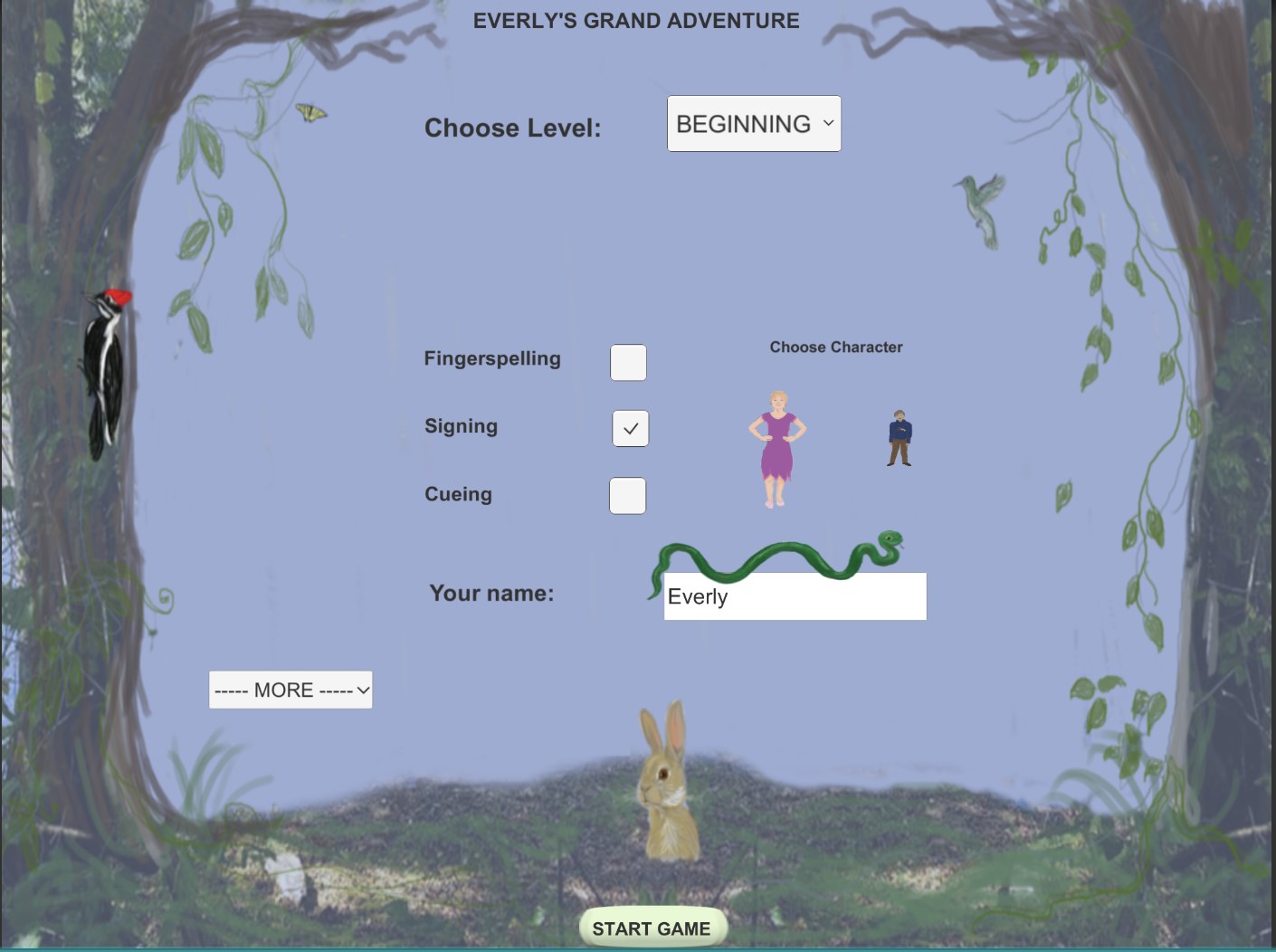 This adventure game lets children and families learn and practice ASL, Fingerspelling and/or Cued Speech using 3 levels of beginning, medium or advanced. Choose your avatar and the clothing.