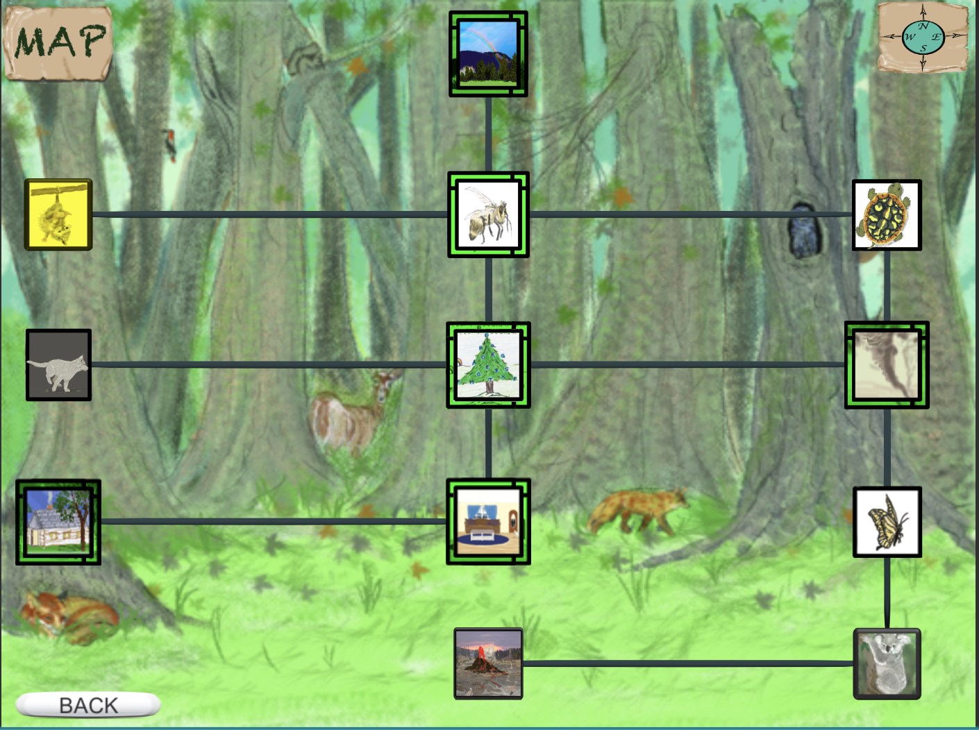 The game challenges the player to find new lands while practicing vocabulary, numbers, colors, math, patterns, shapes directions and the alphabet.