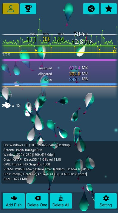 With the whale fish character 3d virtual object generator, you can drop them into the tank to measure how smooth the fps indexing index is.