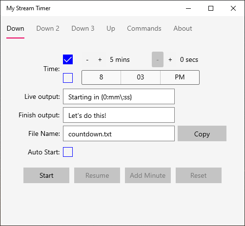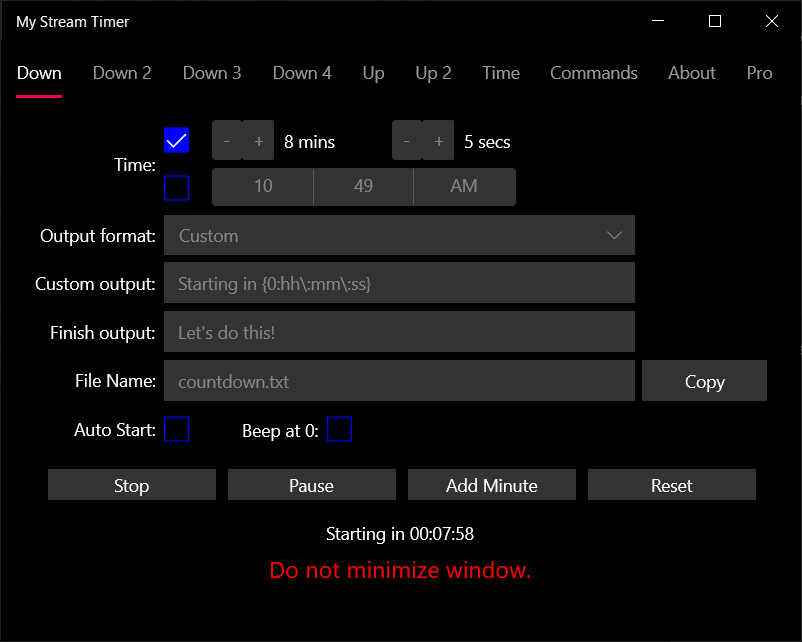 My Stream Timer is an easy-to-use count down and count up times in popular streamer apps. Set custom display messages when counting and what to display when finished and have them displayed on your stream.