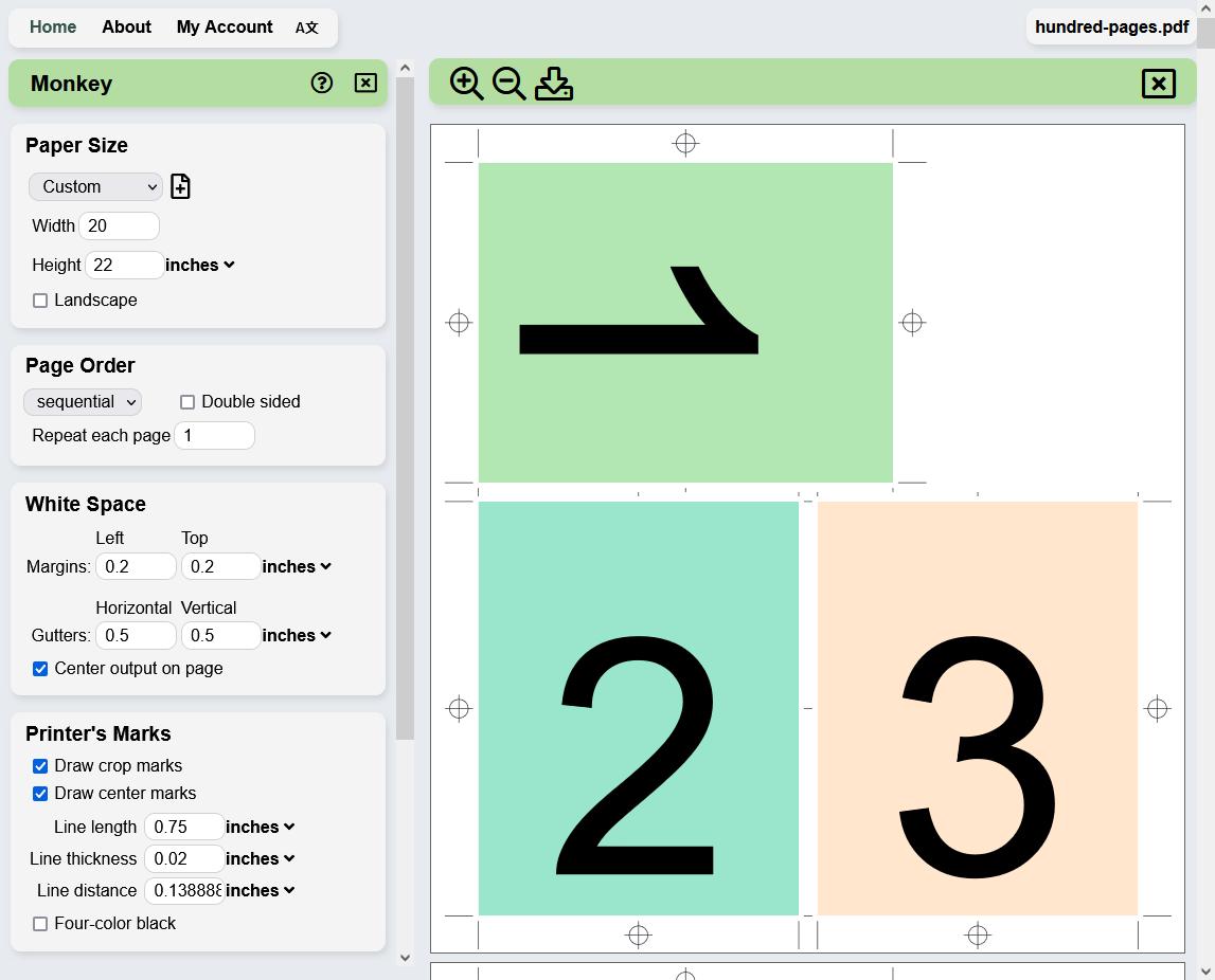 PDF Snake has all the tools you need to prepare your document for the printing press. It reorders PDF documents to make booklets, postcards, business cards or other printed material.