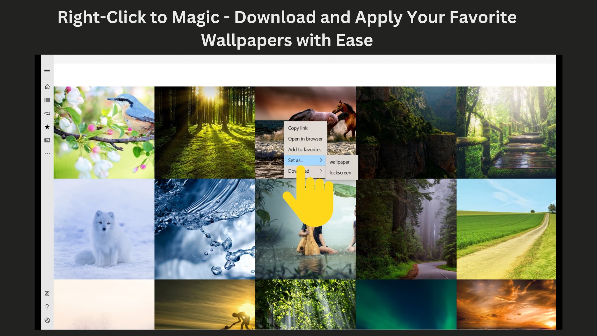 To set the downloaded image as your wallpaper or lockscreen, simply right-click and select 'Set as Wallpaper' or 'Set as Lockscreen'. Enjoy a fresh new look for your desktop and lockscreen instantly.