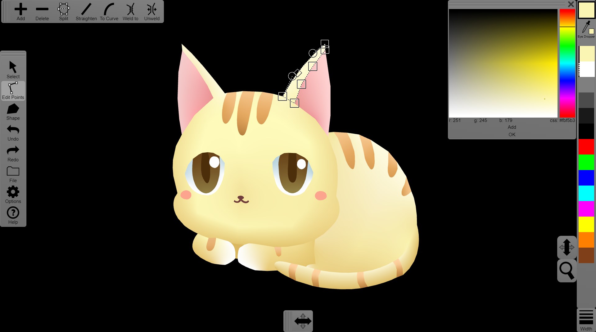 Next generation gradients and gradient meshes Undo and redoExport to PNG, JPEG, SVG, glTF 2.0, COLLADA (dae), PDFImport SVGTransparency and alpha channelsImage warping and texture mappingSnap to gridList view of vector objectsGroup shapesExport vector art for Unity and Pixi.js game enginesPrinting supportArrowheadsDashed linesRight-to-left, bidirectional, and vertical text