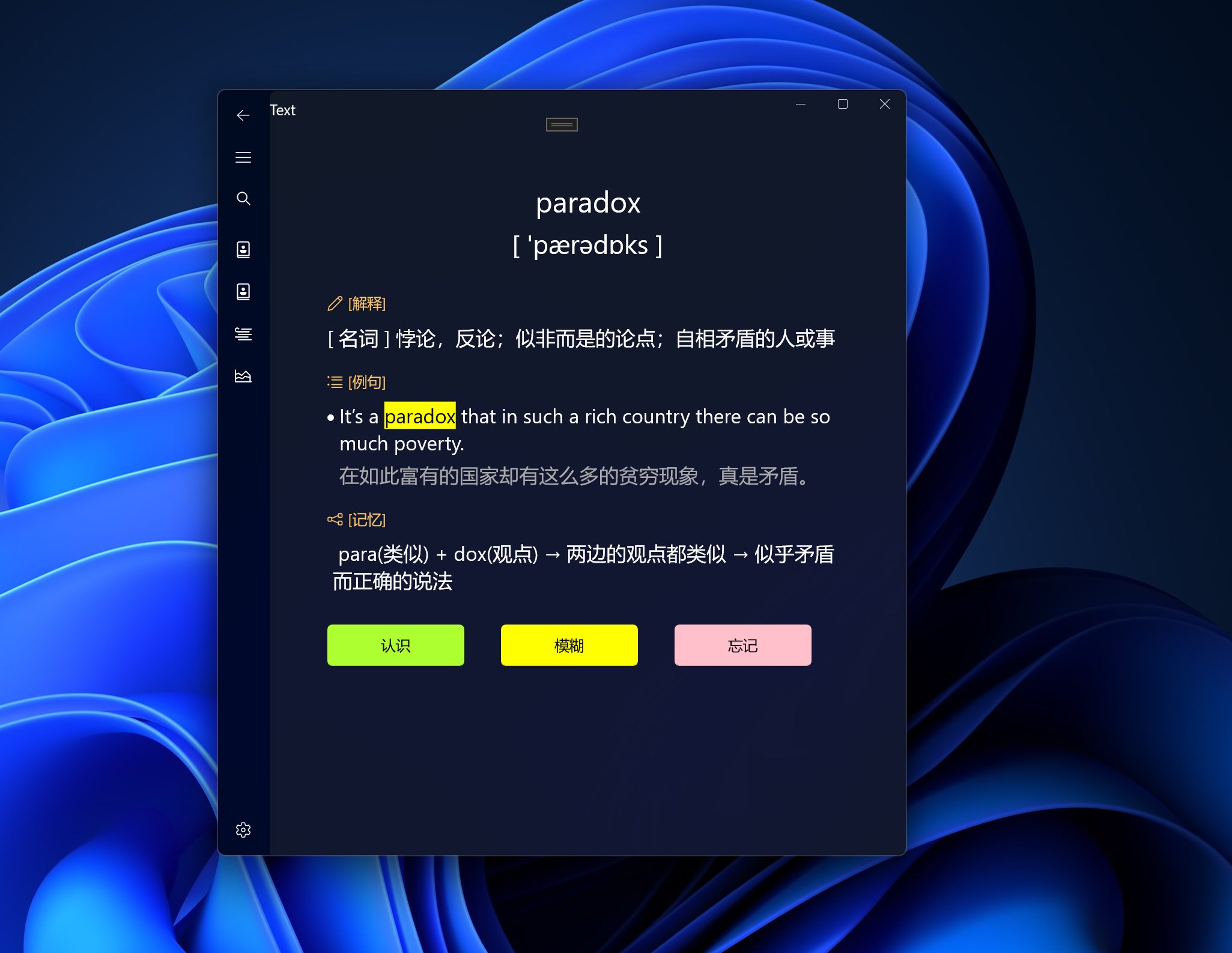 You can recall your native language according to English and mark "remember", "fuzzy" and "forget". It will repeat itself. You can check statistics.