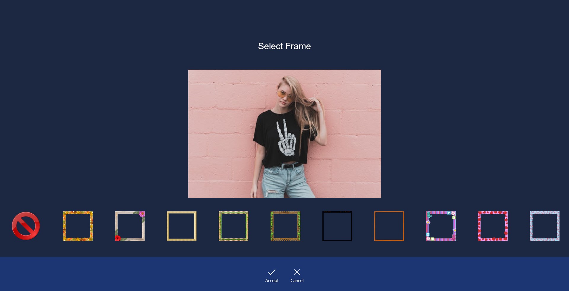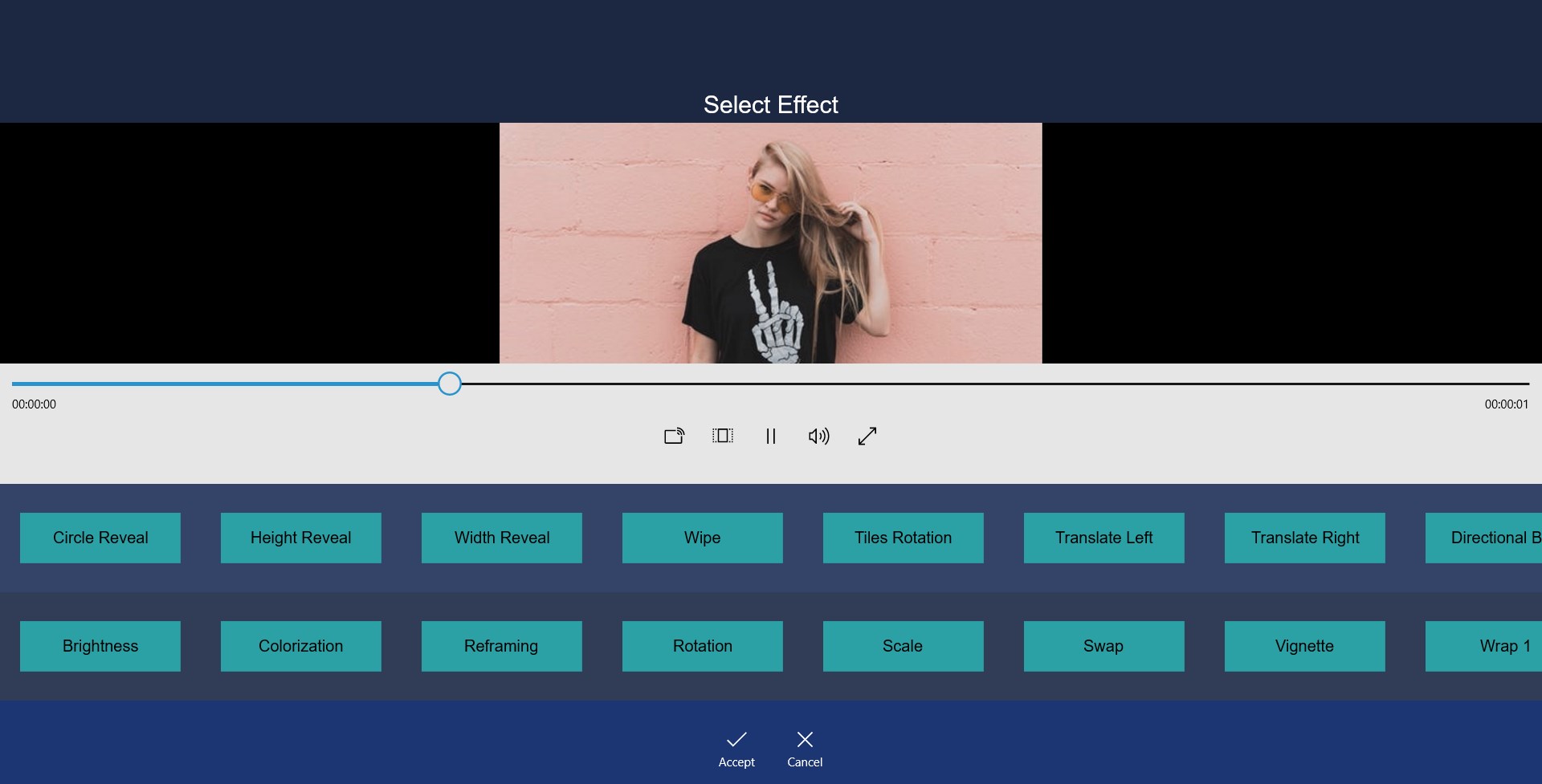 => Select photo from the list of images you have selected and then you can apply frames,background,effects and tranisitions one by one.