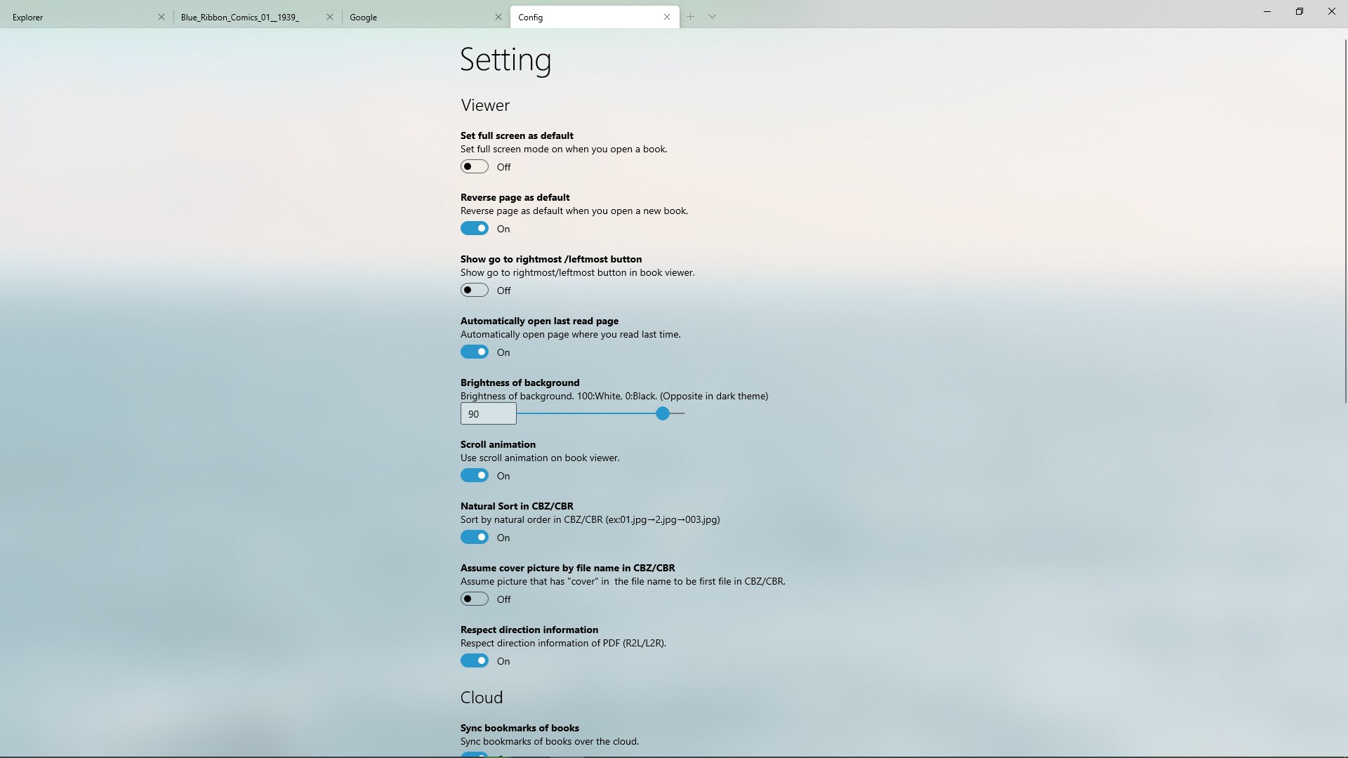 Open CBZ/CBR/CB7/EPUBOpen multiple tabs Fluent Design SystemHave a experience like Windows ExplorerSync bookmarksEmbedded web browserOpen Source Software (MIT License)Abundant setting itemsContinue from the last read pageFund the developer