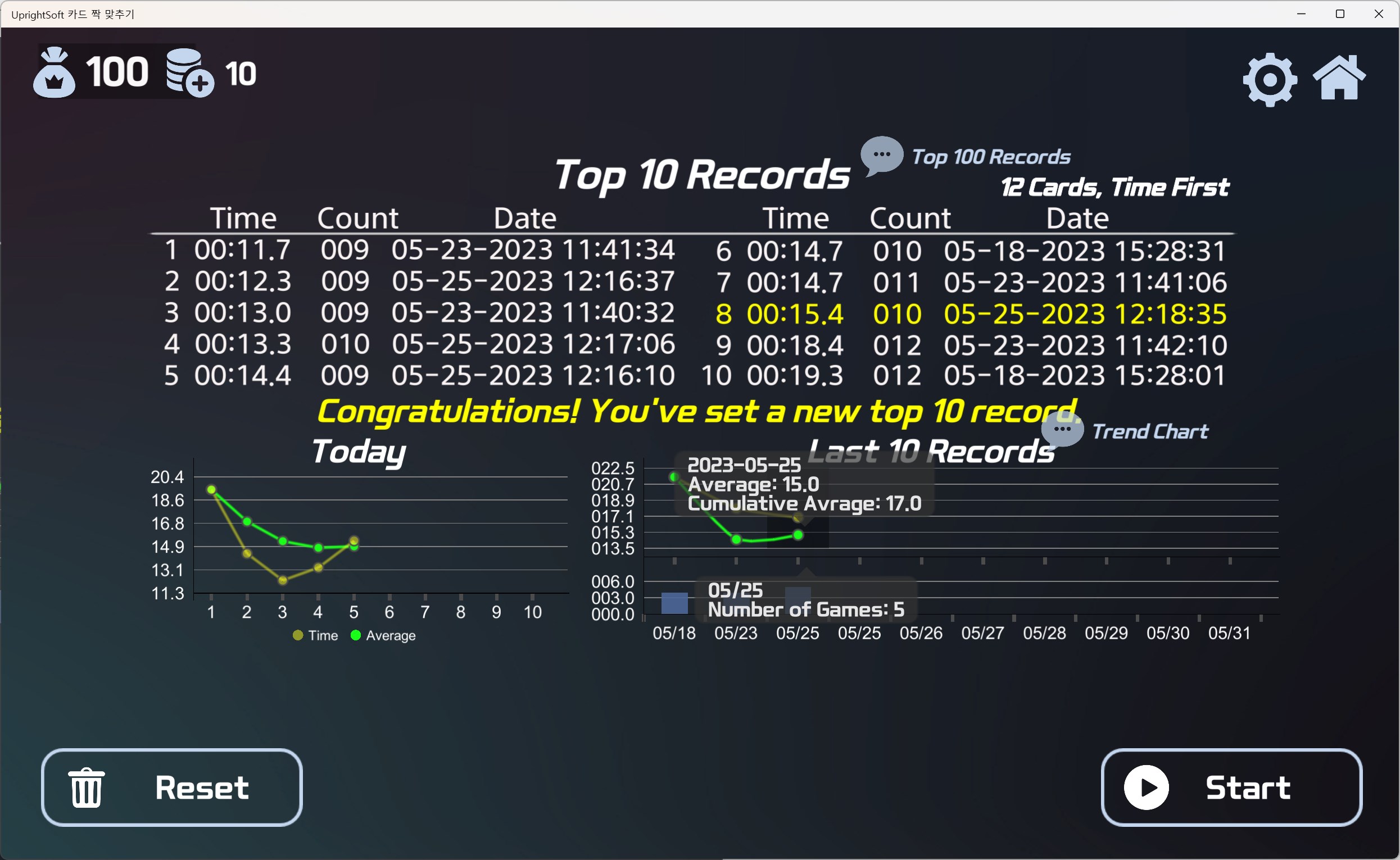 - Play the game often to improve your memory and concentration, and check the trend of changes in a chart.