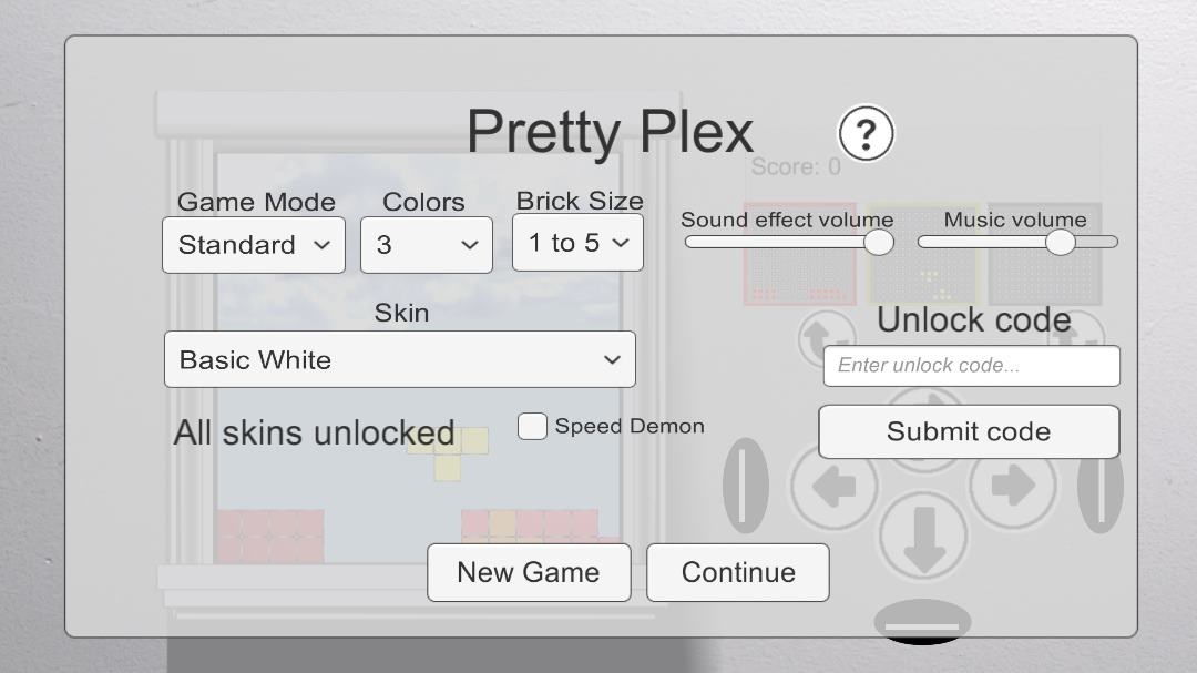 The game play is also very customize-able. You can select things like: the block sizes, whether you're dealing with two or three colors at a time, whether you need to match all rows or just one row to remove bricks, etc.