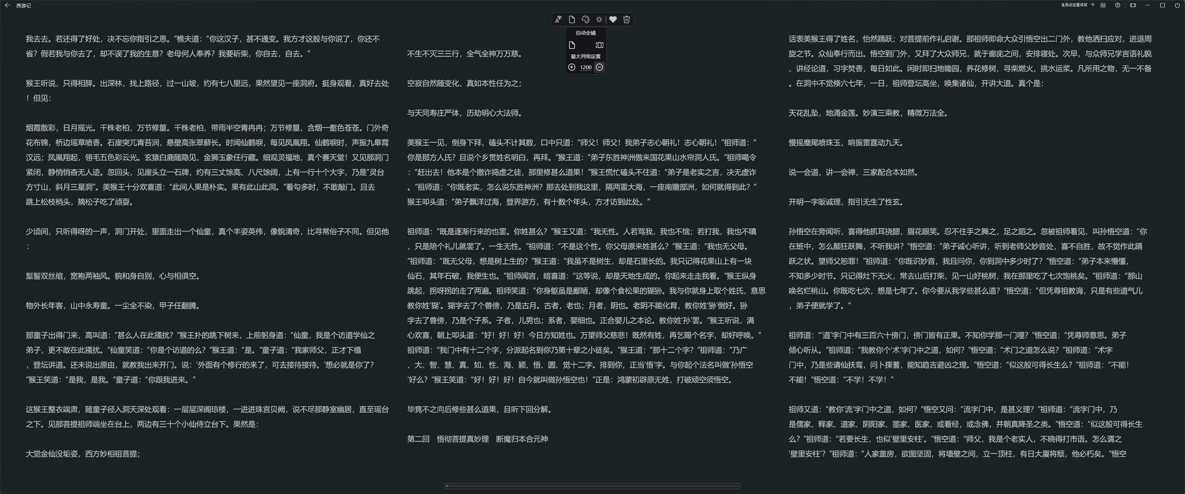 MUReader是一款专注于响应速度与霸屏式阅读的轻量级小说阅读器。百兆体积txt文件无感加载及快速翻页,宽屏显示器上使用时响应式填充内容,针对带鱼屏的特殊优化更可以有效活动颈椎。简洁设计的界面仅保留少量操作区域,一切为了更畅快的阅读体验服务。