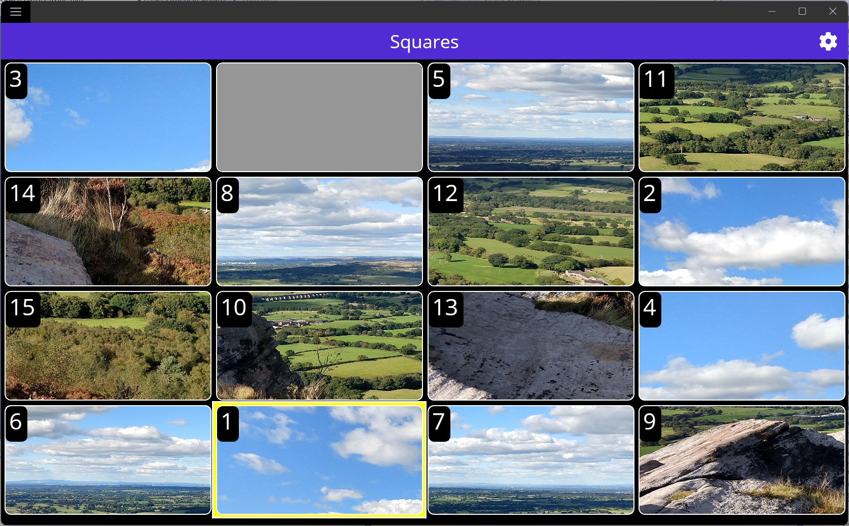 The Squares Game is based on a square sliding puzzle, where squares in a grid of squares are rearranged by the player to form an ordered sequence of squares in the grid. When the game is run, a 4-by-4 grid of squares appears, with fifteen of those squares occupied with a movable element, and one square being empty. When a square is clicked, if it is adjacent to the empty square, the clicked square moves into the empty square. The space where the tapped square was then becomes the empty square. The aim is to arrange all the squares in a sorted order, leaving the empty square in the bottom right corner of the grid. Once all the squares are ordered, the game is won.