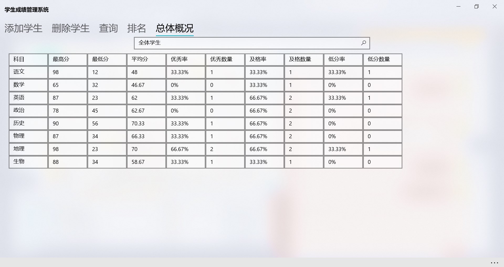 一个让老师方便快捷地管理学生成绩的小工具