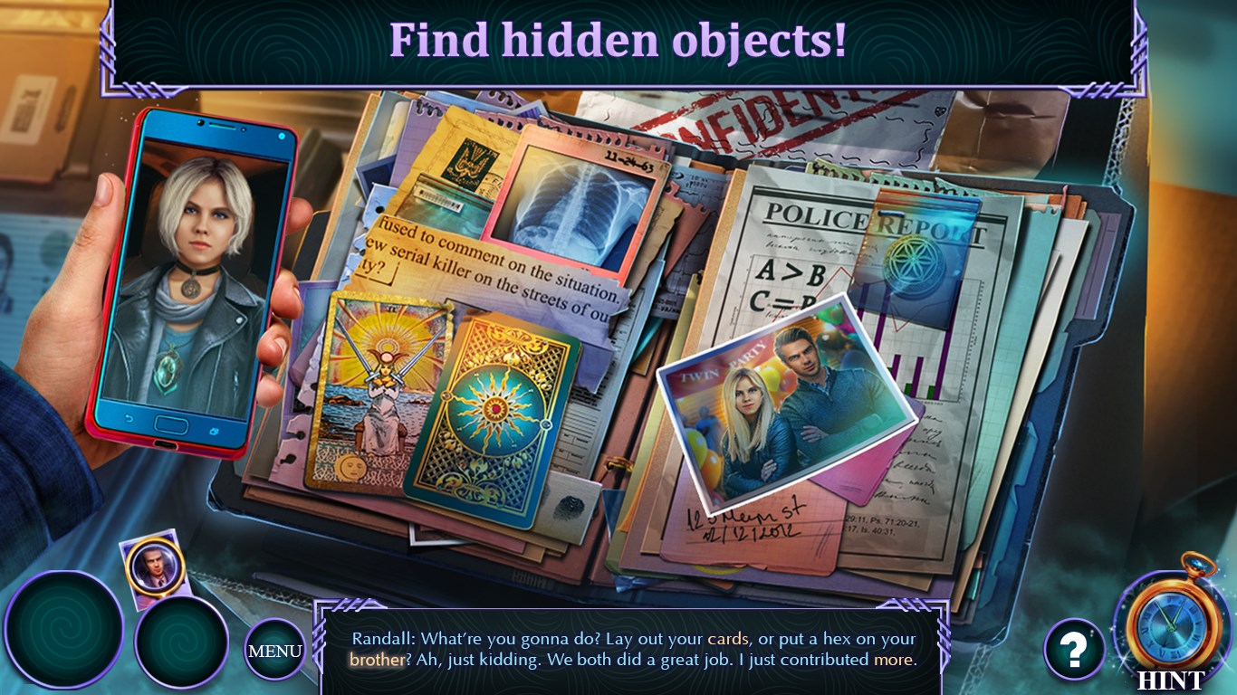 When a young woman is kidnapped from a public place, in the middle of the day, with no witnesses, the only detectives that can pick up her trail are Randall and Eleanor, the twin detectives who each bring a unique approach to every case! Randall is a forensics expert who uses science and logic, while Eleanor uses intuition and arcane mysticism to find the clues. But this time, even their combined specialties might not be enough. They’ll need your help and skills to make sure this mystery isn’t their last! Gather your wits for an unforgettable detective story in this pulse-pounded new Hidden-Object Puzzle Adventure!