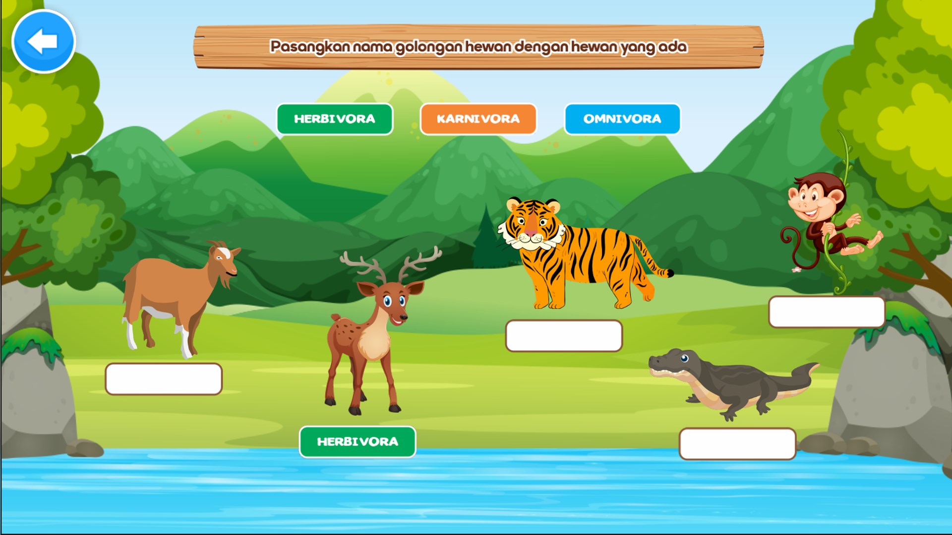 Aplikasi Belajar Golongan Hewan adalah permainan edukasi yang berisi informasi edukasi tentang jenis atau golongan hewan berdasarkan makanan (Herbivora, Karnivora, Omnivora). Disajikan dalam permaninan puzzle yang menarik dan juga terdapat menu kuis untuk menguji pengetahuan