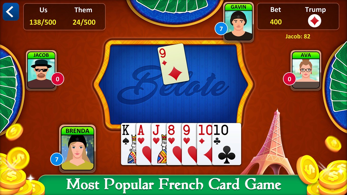 It’s also worth noting that you’ll get better at Belote with every card you play. So, be patient and improve your skills step by step - you’ll be showing your opponents how it’s really done in no time.