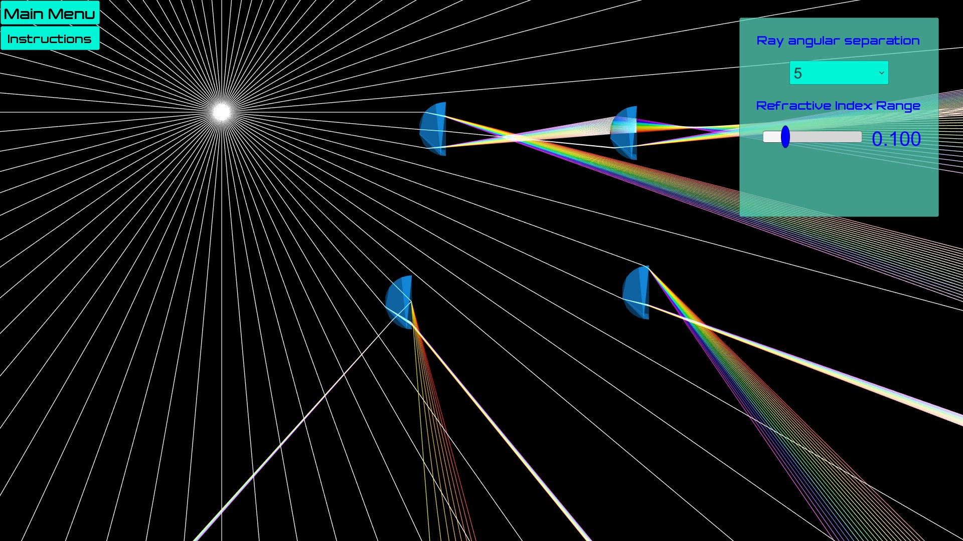 Optics Lab contains many of the optical systems required for GCSE and A level Physics, including: refracting and reflecting telescopes, refraction in parallel sided prisms, magnifying lenses, the eye, glasses and chromatic aberrations.