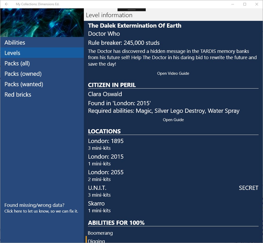 Contains all info about LEGO Dimensions packsAll building instructions for all toysContains level information, abilities, adventure worlds, red bricksTrack what red bricks you found & bought, what repairs you\'ve done, ...
