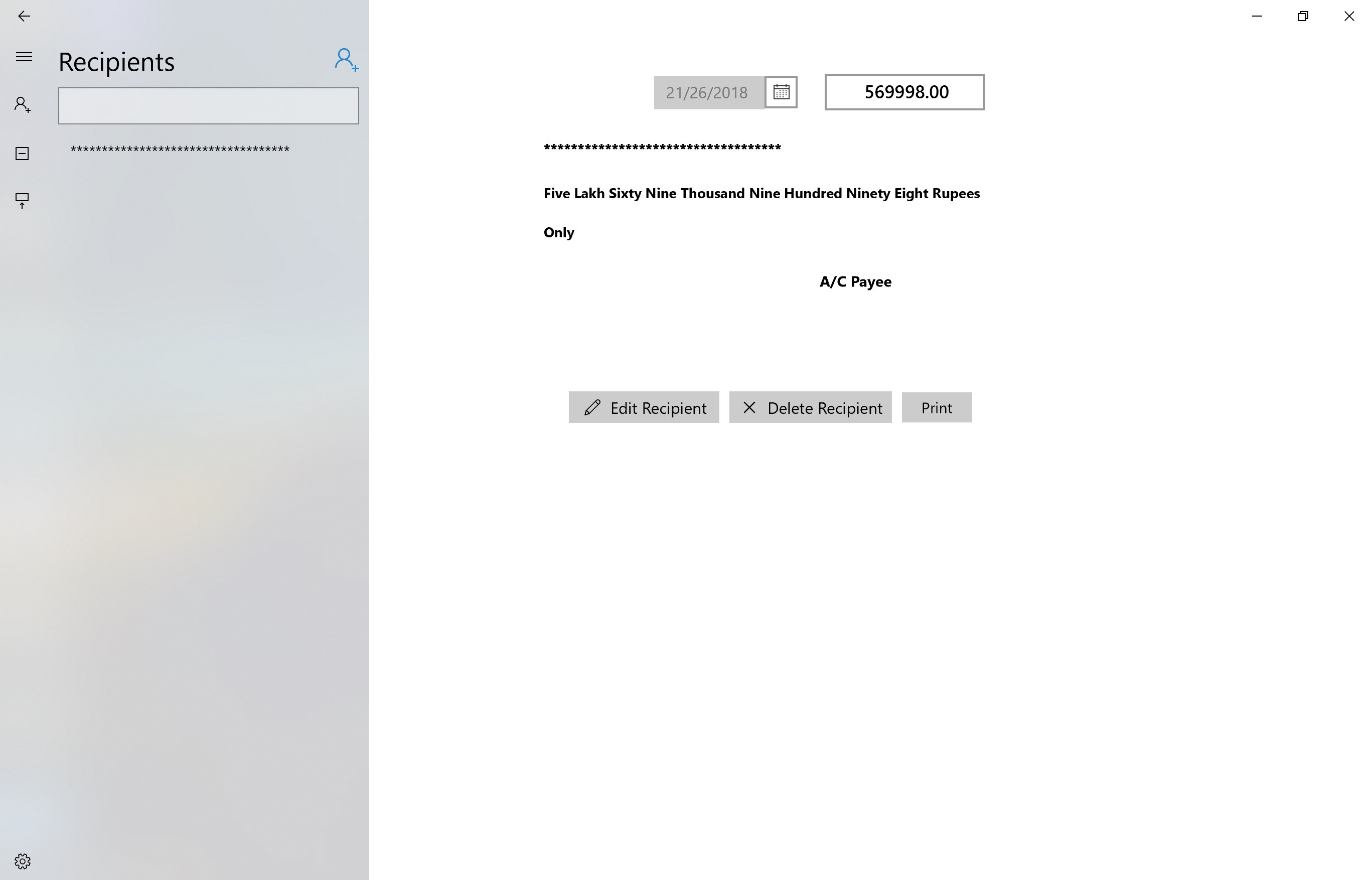 Print EnvelopePrint ChequeAdd Contacts in Your Local DataYou can Backuped your Data in any folder and restor