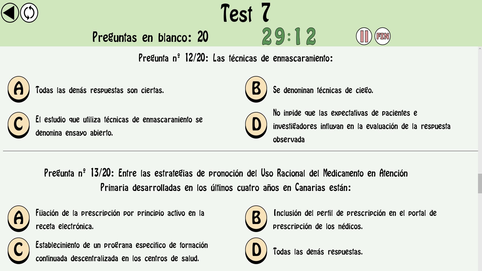 - Dos modos de realizar un mismo test (modo de respuesta instantánea o modo examen).
