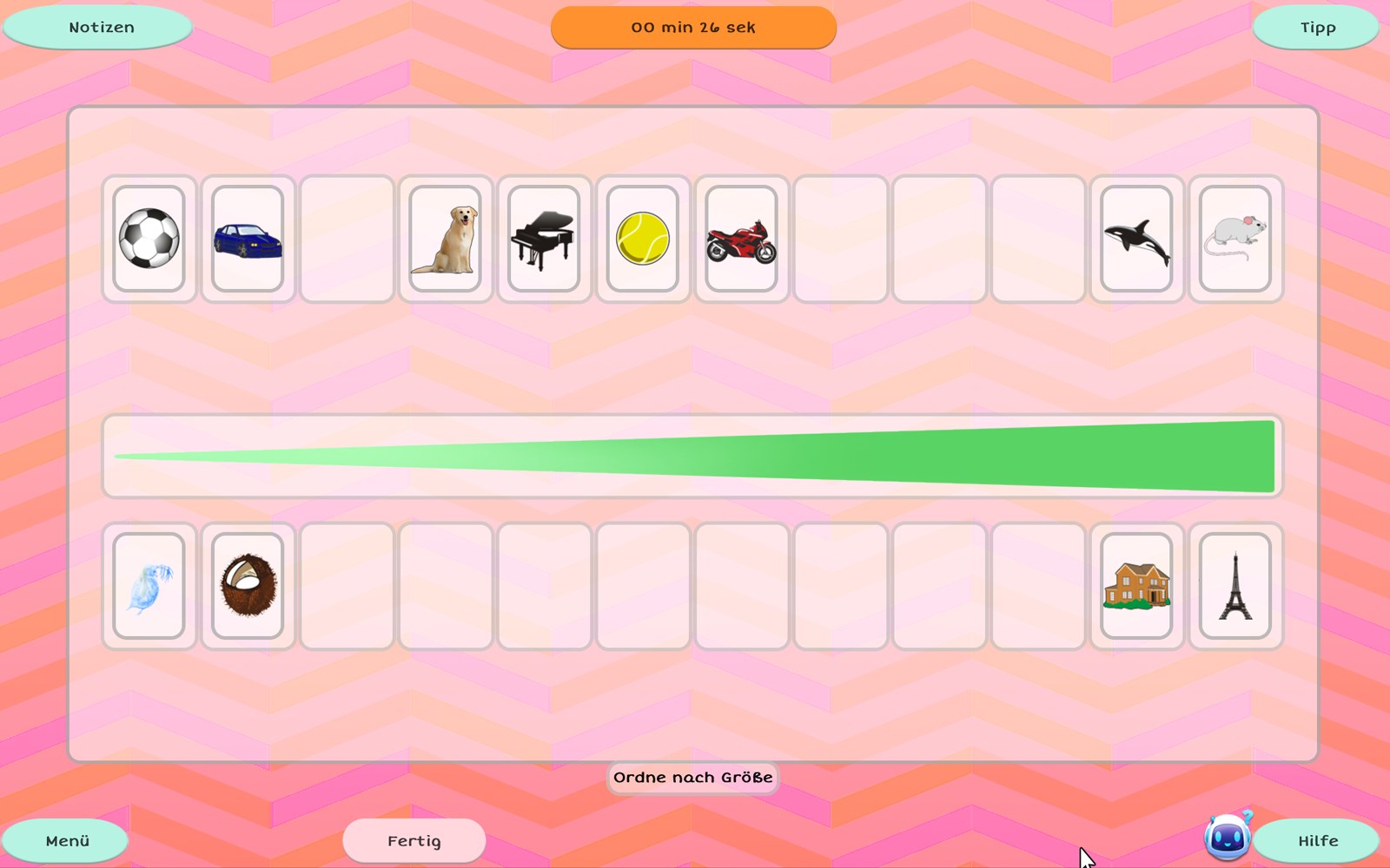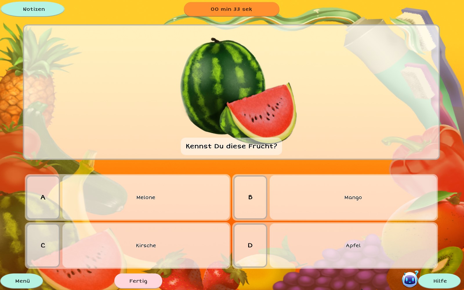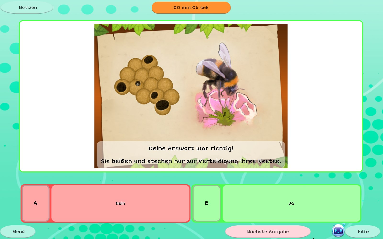 Das Lernprogramm beinhaltet außerdem einen Test für jede Klassenstufe. Wird dieser bestanden, öffnet sich ein kleines Spiel zur Belohnung.