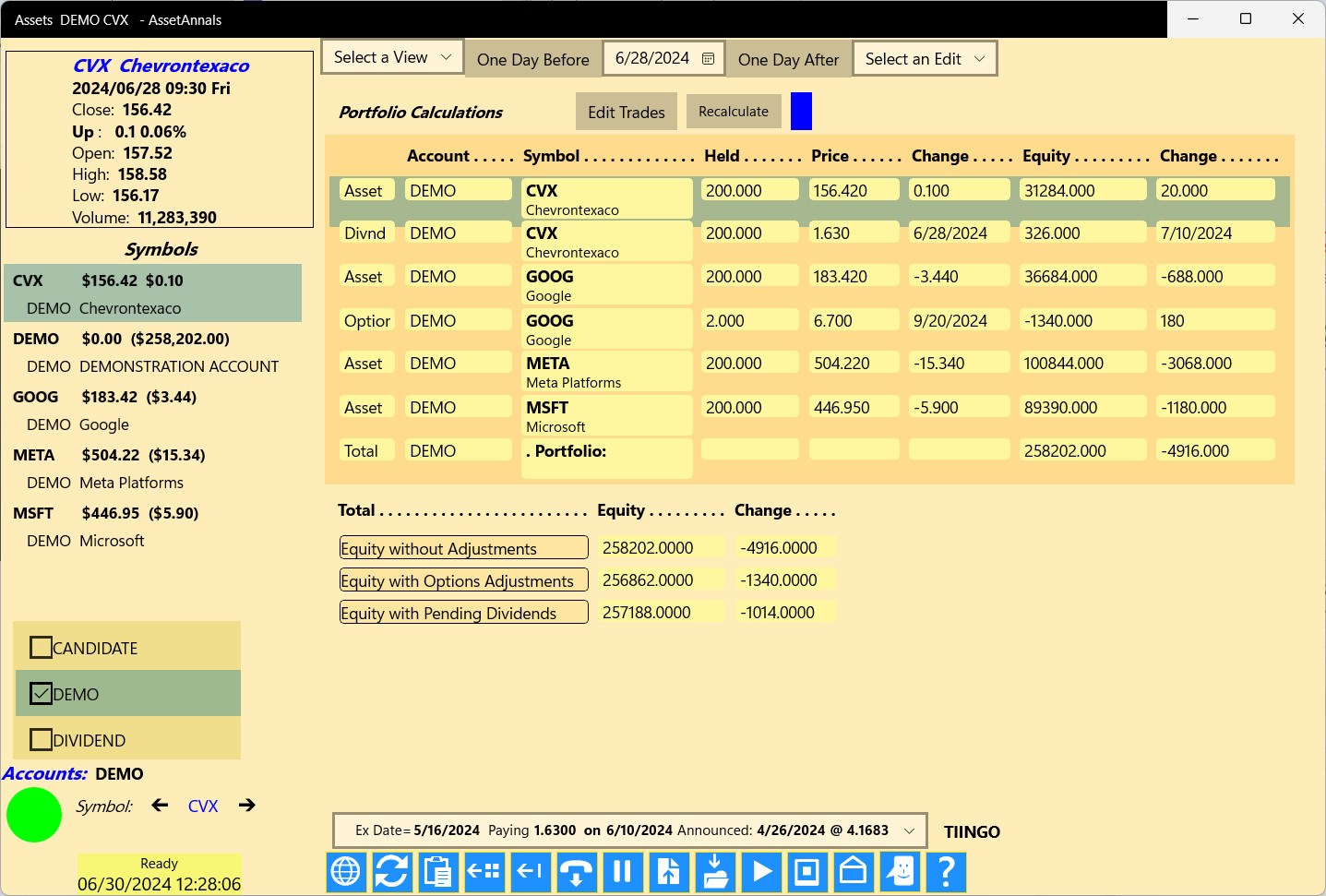 ⦁ Facilities and tools are provided to group and merge multiple companies' quotes and account balances under a single Symbol which may then be viewed as a Portfolio.