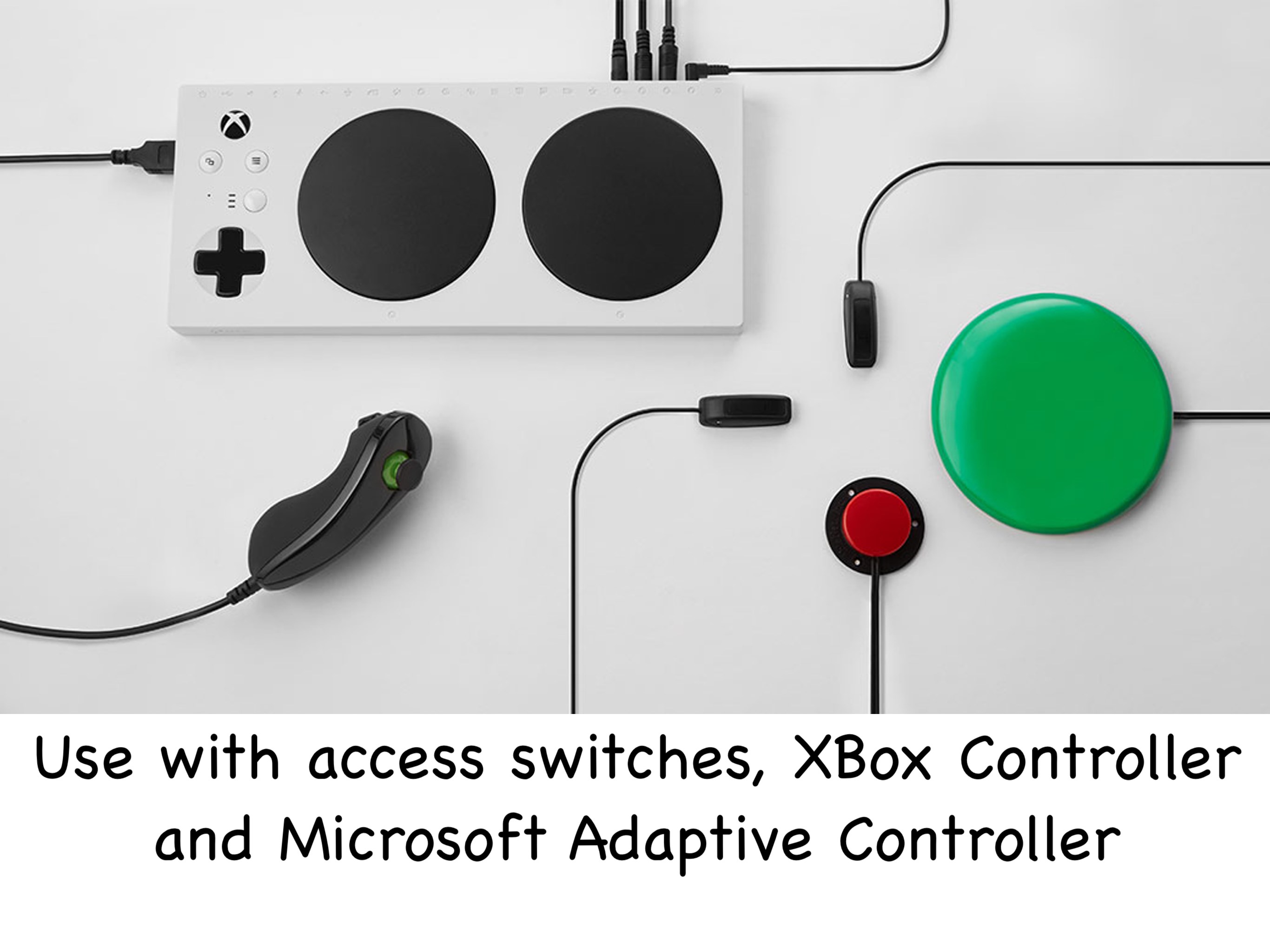 Please note that not all access switches have a “press and hold” function, but the Microsoft Adaptive Controller/ XBox Controller and a standard keyboard do have this capability.