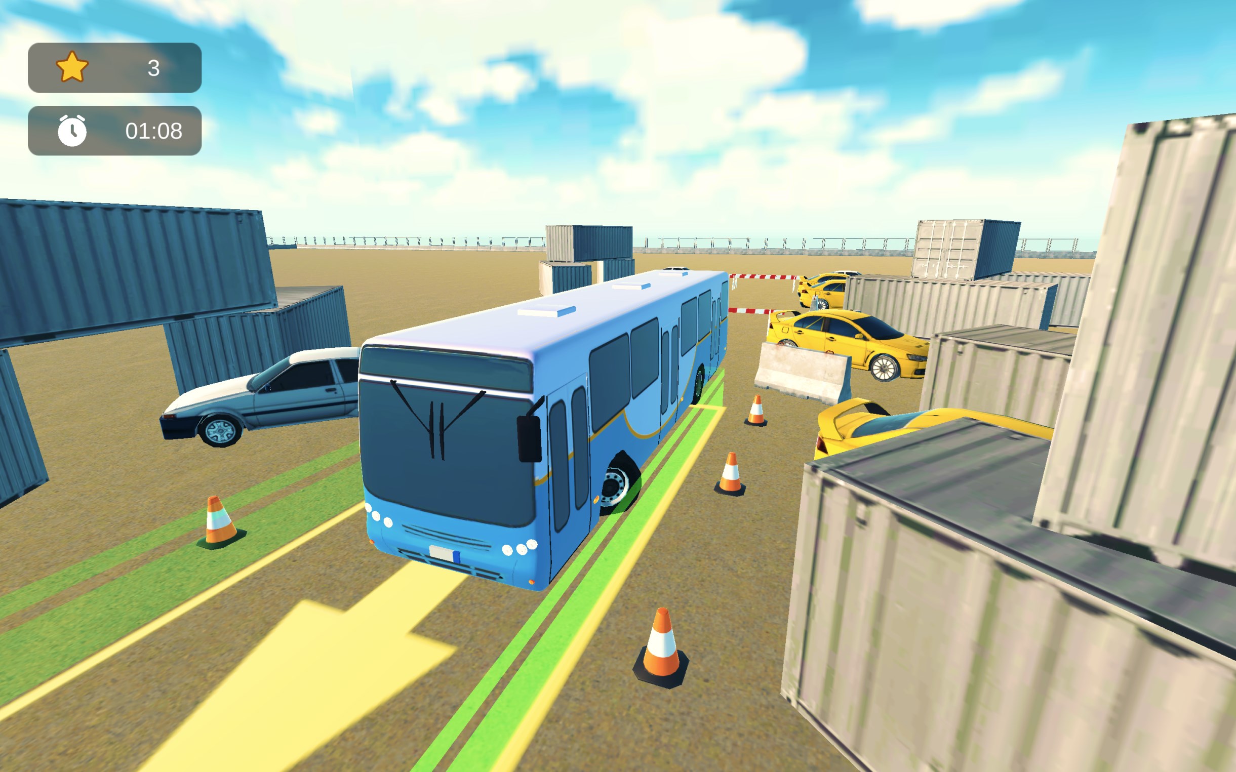 Precision Bus Parking: Test your skills with challenging parking scenarios.Multiple Camera Angles: Switch views to find the perfect parking perspective.Intuitive Controls: Smooth and responsive controls for easy driving.Realistic 3D Graphics: Immersive visuals that bring the parking experience to life.Varied Levels: Increasing difficulty with tight corners and obstacles.Achievements: Unlock unique achievements as you master each level.Sound Effects: Realistic sounds that enhance the driving experience.